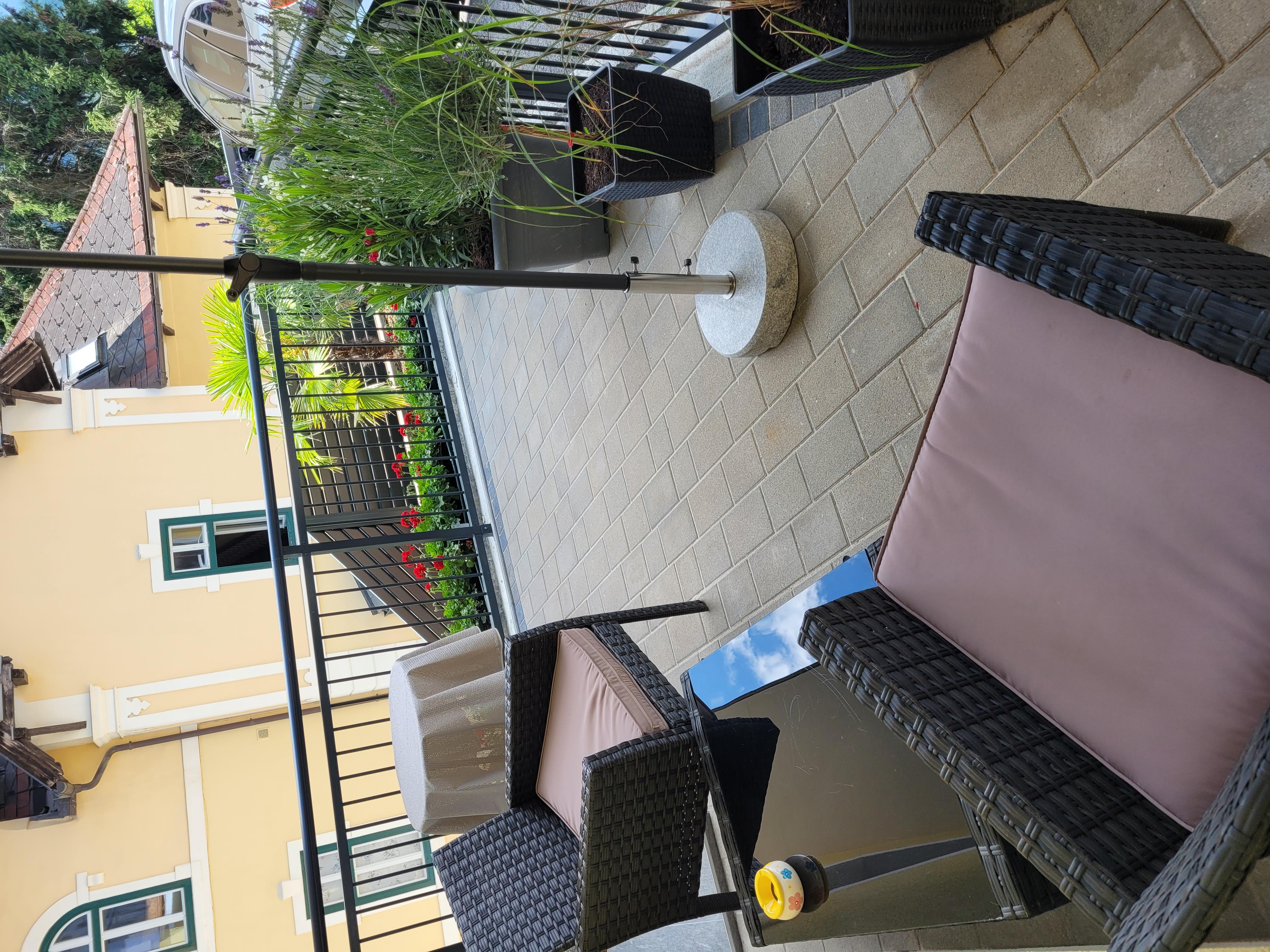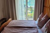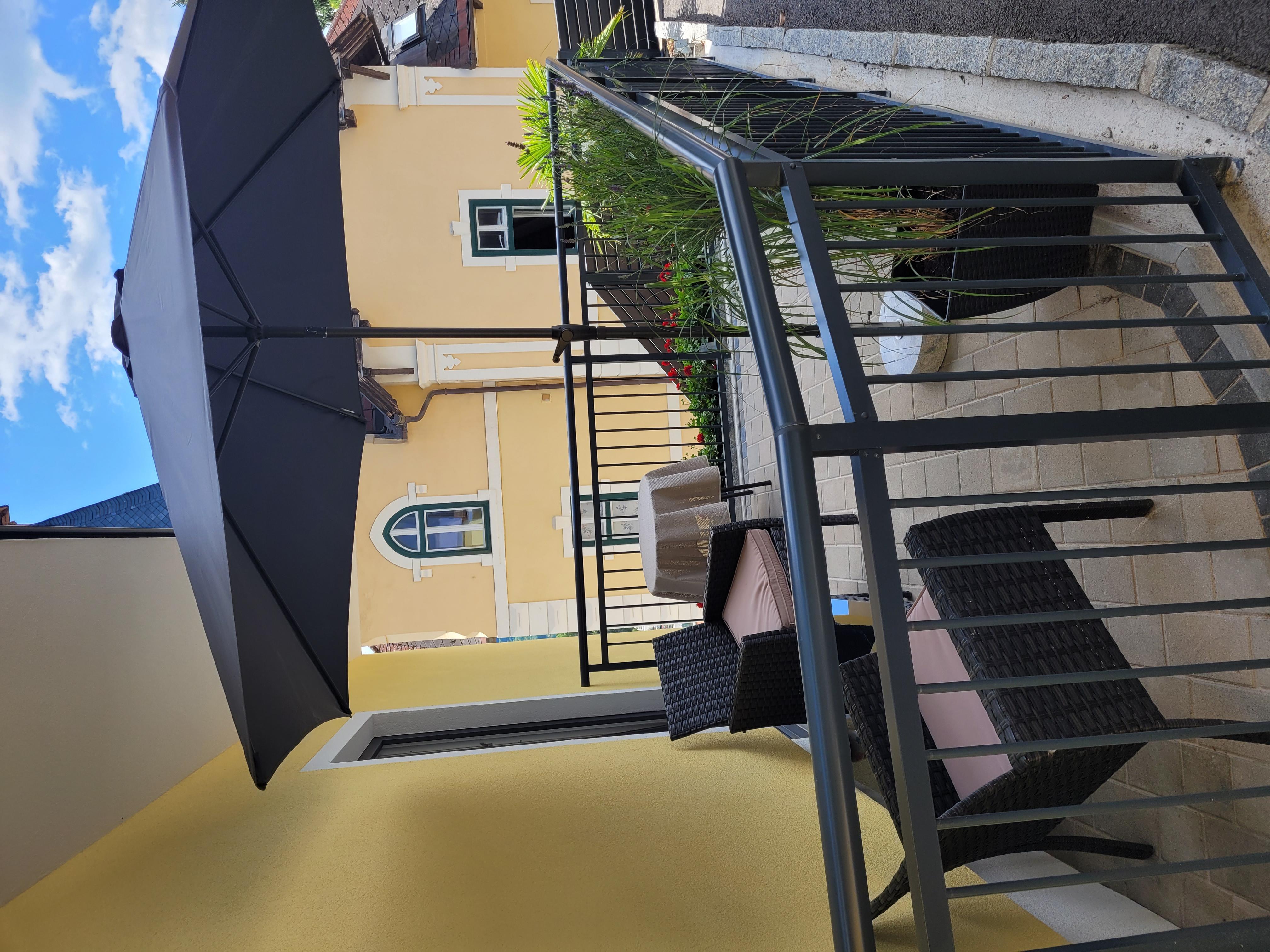Das Schlafzimmer und Wohnzimmer verfügt über einen Balkon, vom Wohnzimmer aus in Richtung Westen steht unseren Gästen eine Terrasse zur Verfügung.