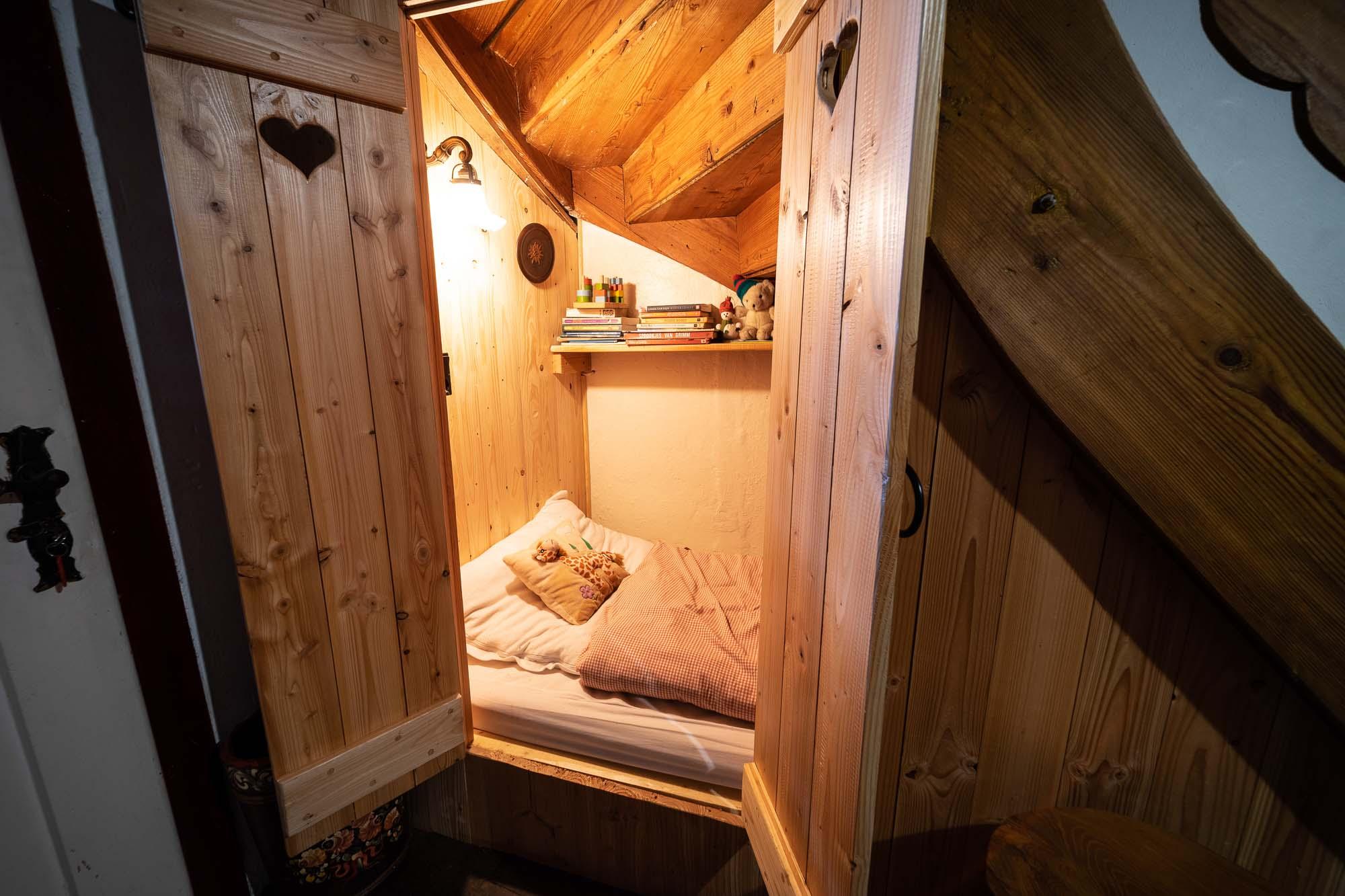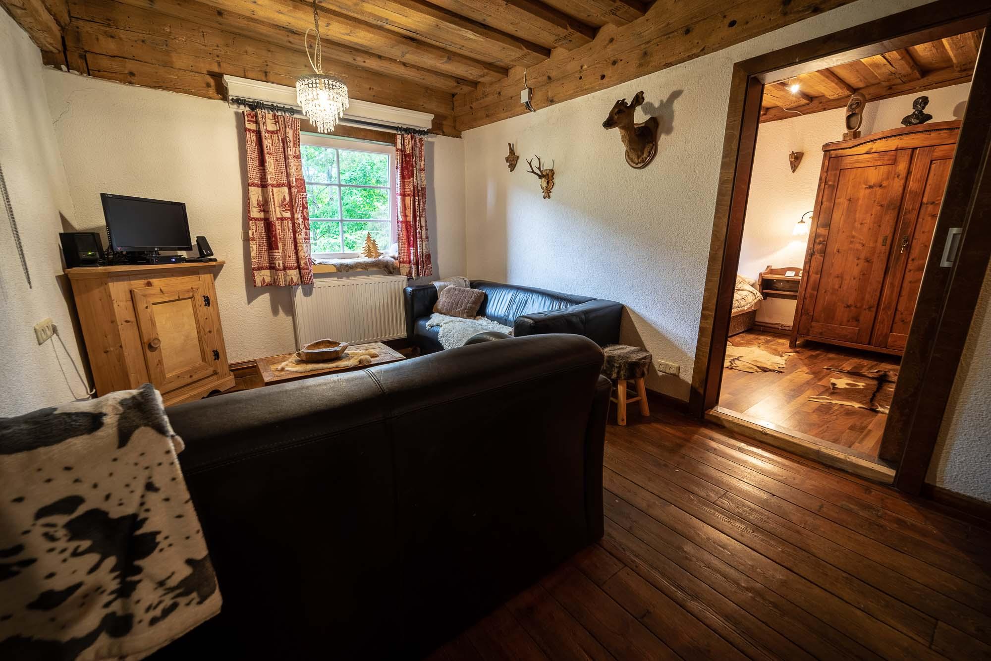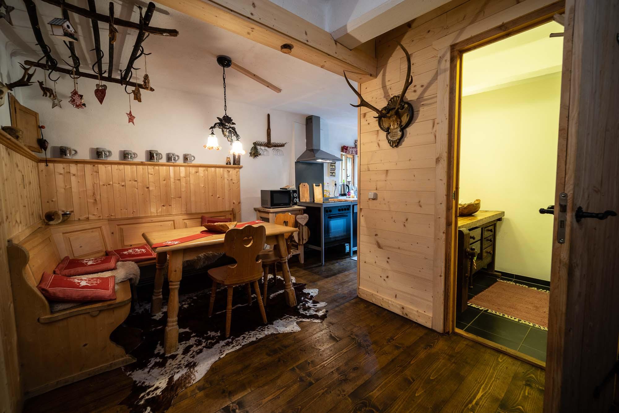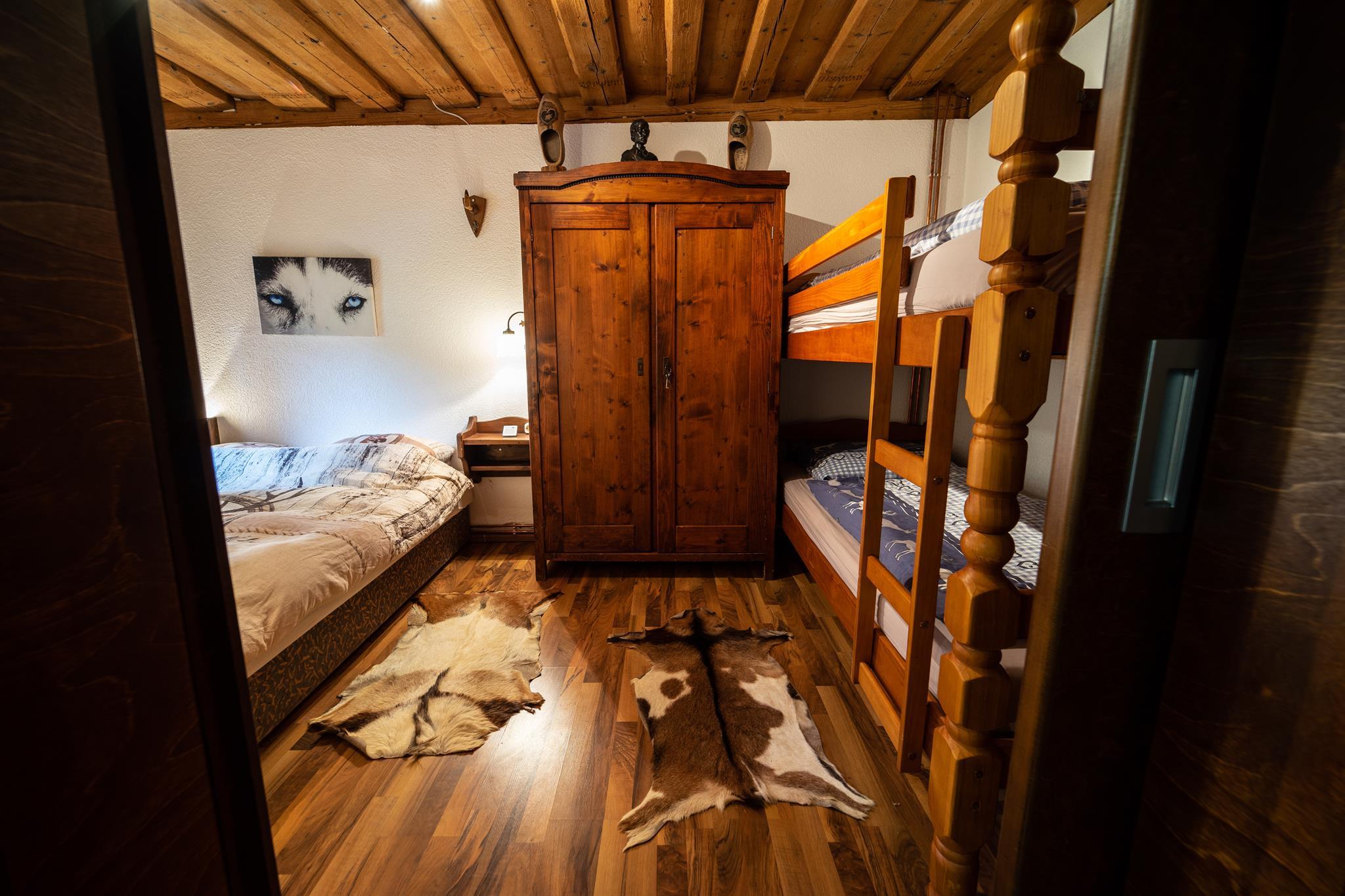 Das Appartement „Berghof“ ist aufgeteilt in ein Schlafzimmer mit einem Doppelbett sowie zwei Einzelbetten, einen Wohn-, Koch- und Essbereich Küche sowie einem Bad mit separatem WC im Erdgeschoss. Ein weiterer Schlafbereich mit Doppelbett befindet sich im ehemaligem Keller im Untergeschoss.