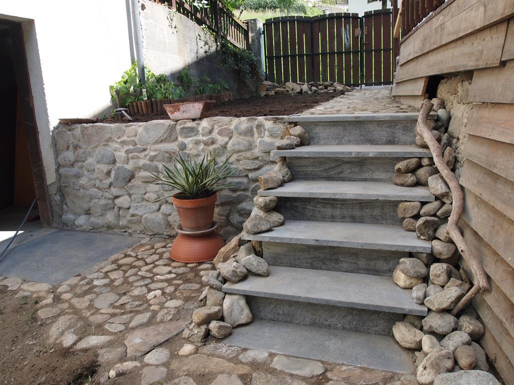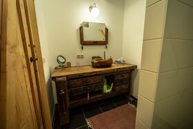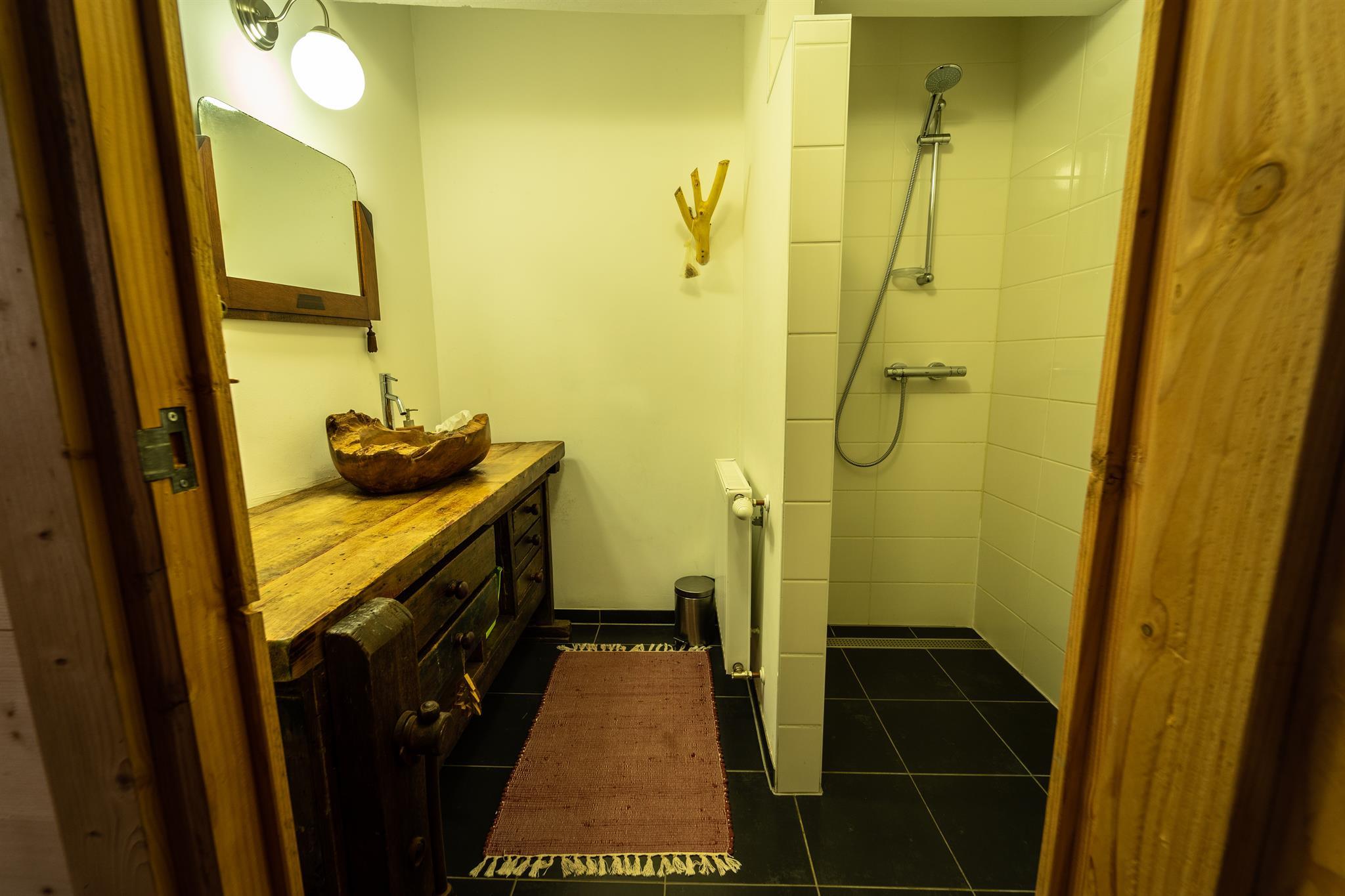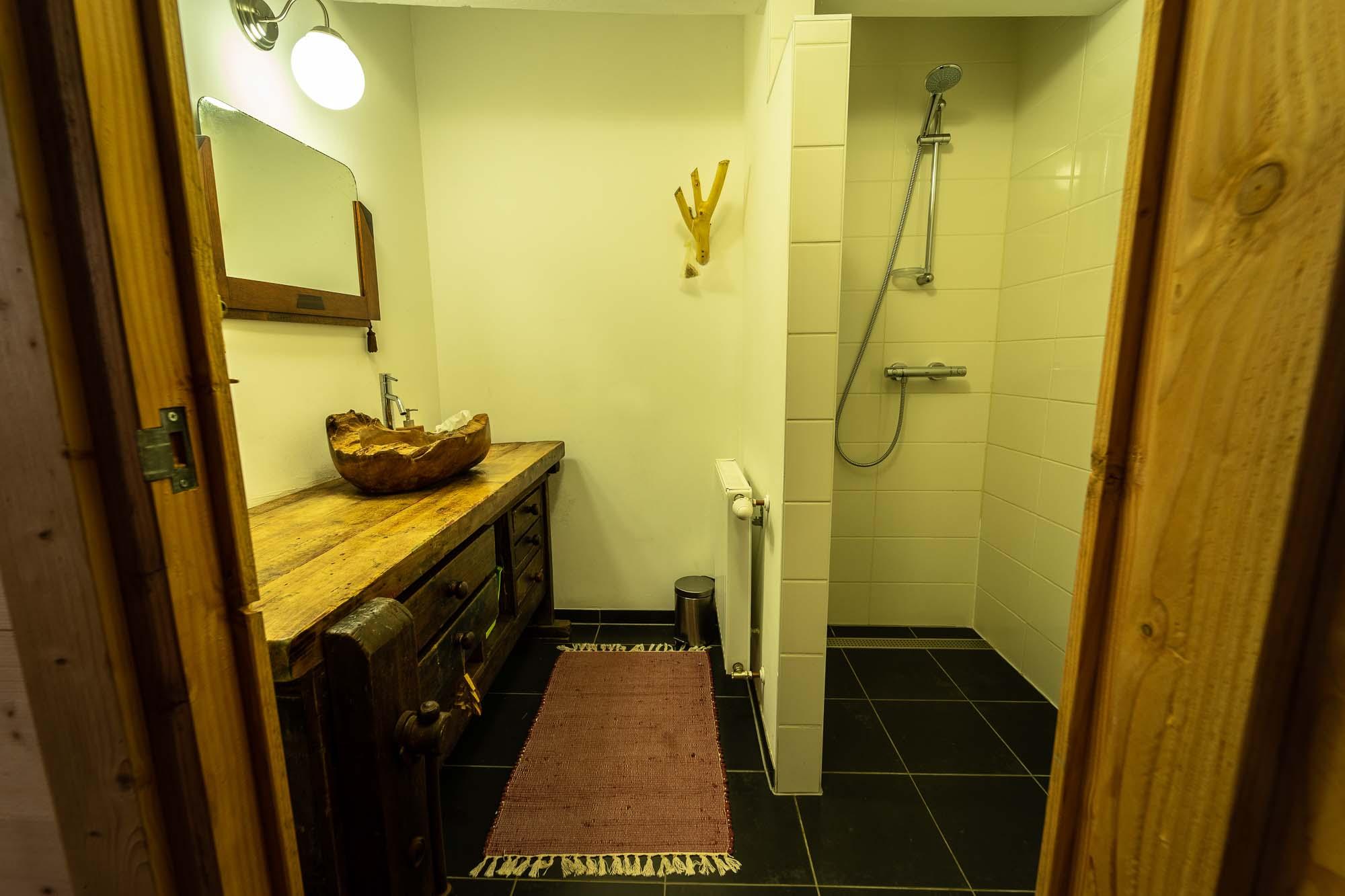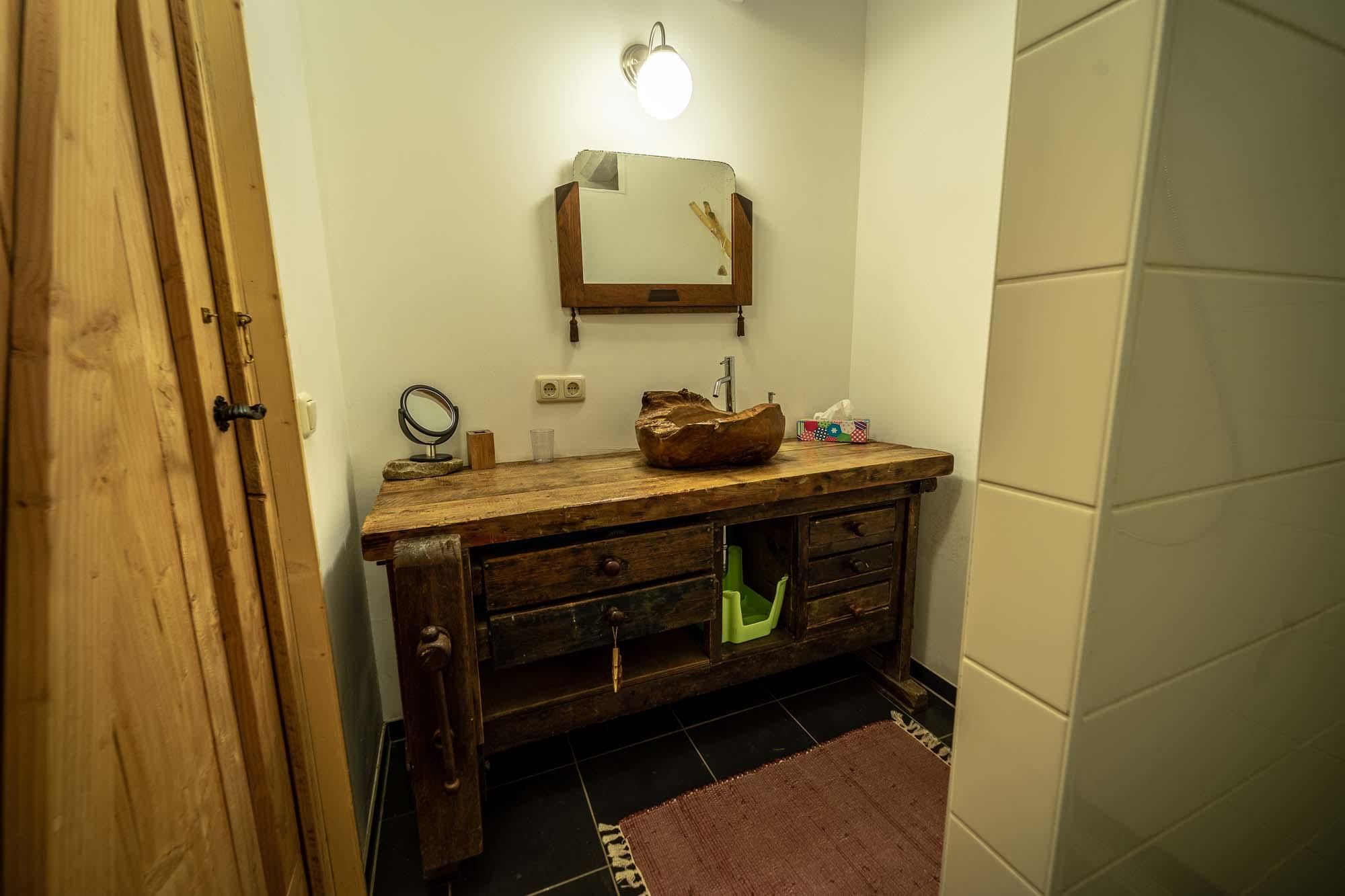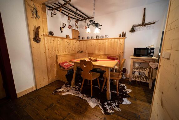 Das Appartement „Berghof“ ist aufgeteilt in ein Schlafzimmer mit einem Doppelbett sowie zwei Einzelbetten, einen Wohn-, Koch- und Essbereich Küche sowie einem Bad mit separatem WC im Erdgeschoss. Ein weiterer Schlafbereich mit Doppelbett befindet sich im ehemaligem Keller im Untergeschoss.