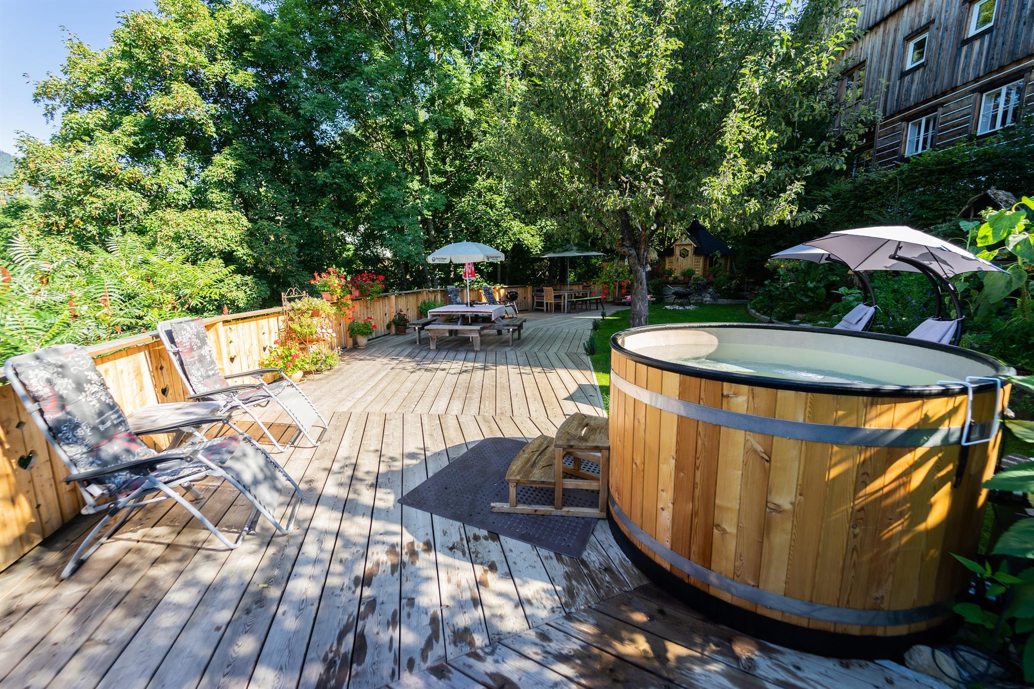 Ein weiteres Highlight der Unterkunft ist der große Garten, der zum Entspannen und Genießen einlädt. Hier finden Sie einen Hot Tub, der zu erholsamen Stunden im warmen Wasser einlädt, sowie einen Griller, der ideal für gemütliche Grillabende im Freien ist. Der Garten bietet zudem reichlich Platz für Aktivitäten und ist ein perfekter Ort, um die Natur in vollen Zügen zu genießen.