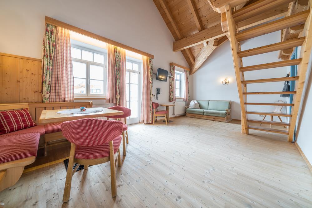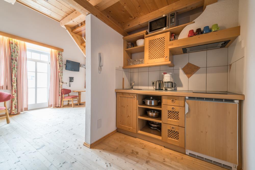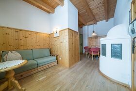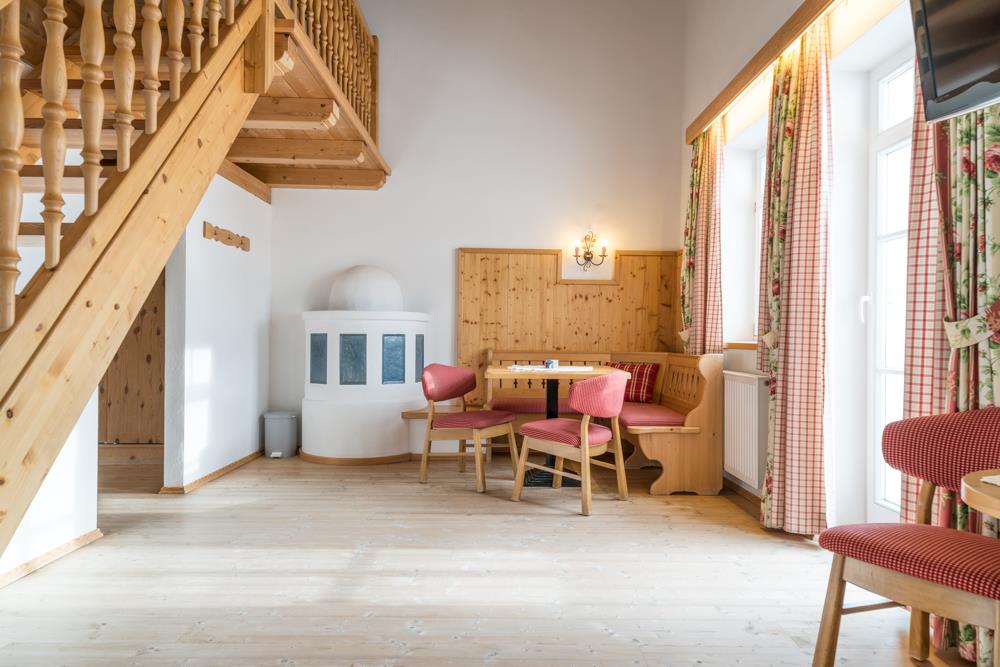 Appartement Marzell (2-4 Personen) Geräumiges Appartement mit einem Doppelschlafzimmer, Wohnzimmer mit ausziehbarer Couch, Küche, Bad/WC, Föhn, gemütliche Sitzecke mit Kachelofen (elektrisch beheizbar), Balkon oder Wintergarten, Flatscreen-SAT-TV, Radio, Telefon und Safe, ca. 38-55 m².