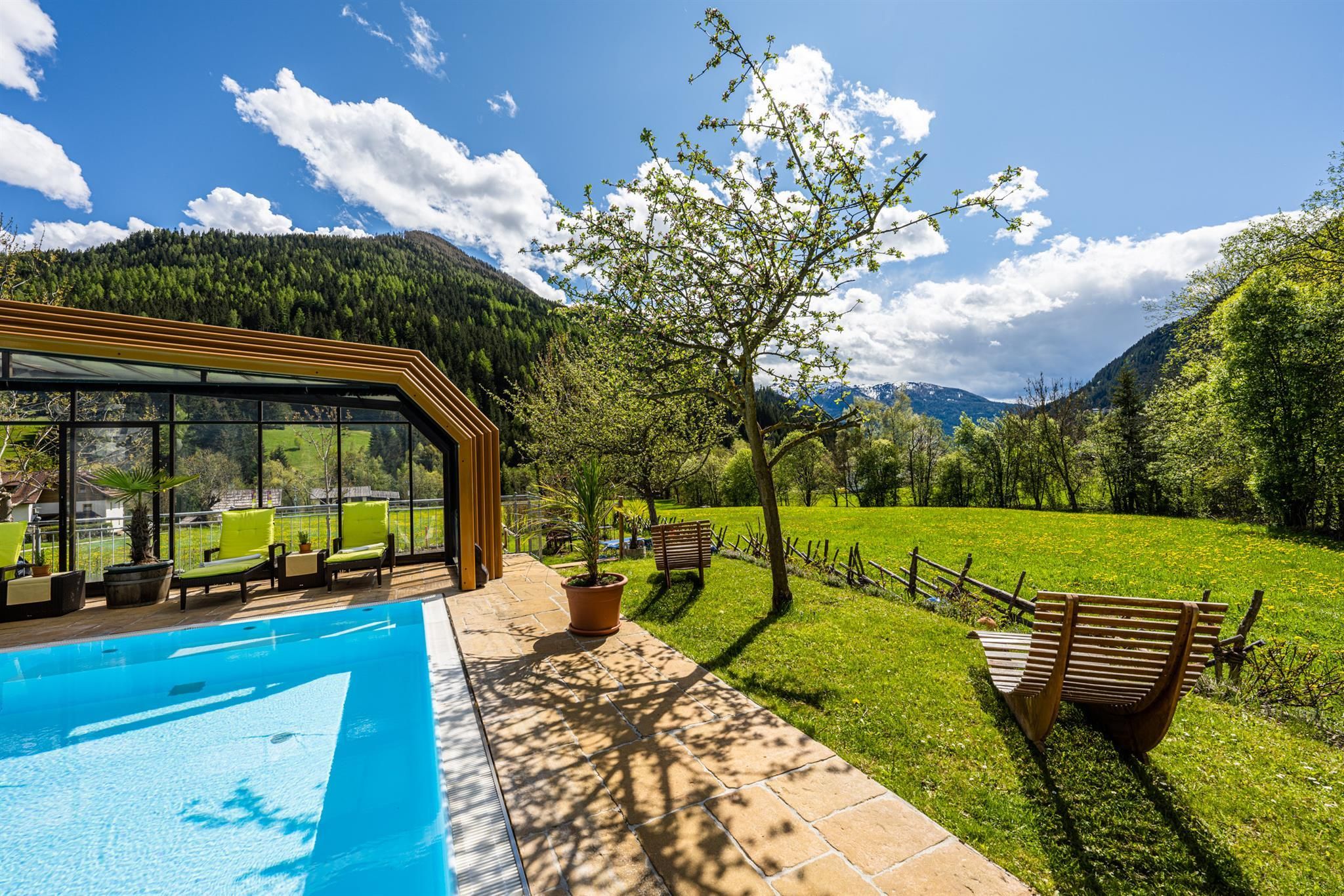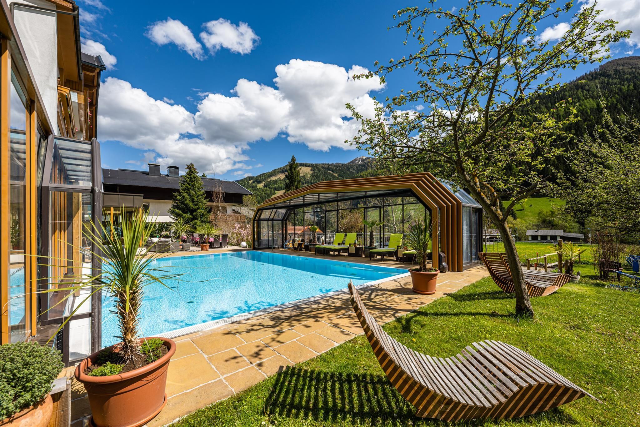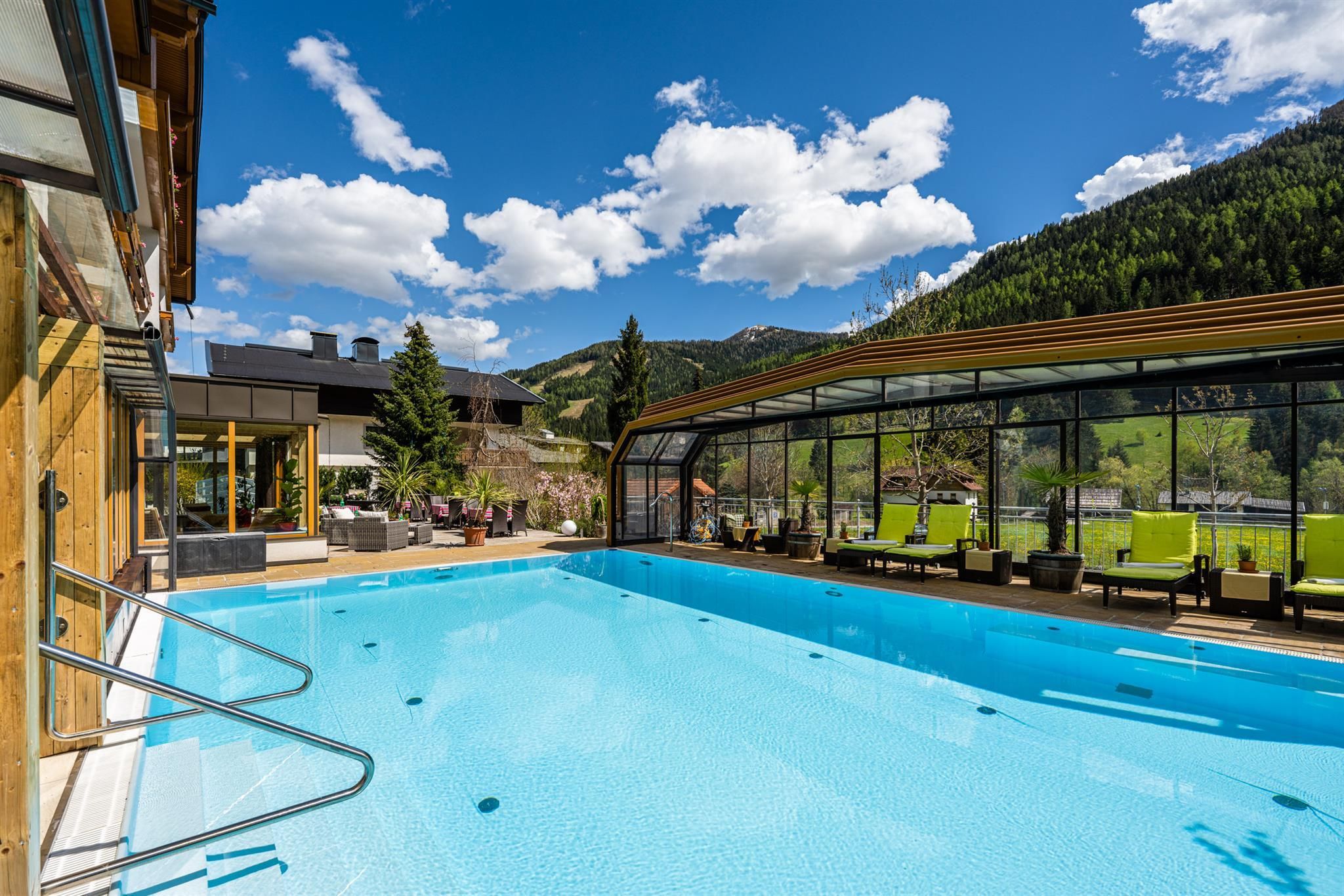Willkommen im Hotel Almrausch mit der 500 Quadratmeter großen Wellnessoase auf zwei Ebenen. Freuen Sie sich auf jede Menge Relaxen, Energietanken und Kraftholen mit überdachtem, ganzjährig nutzbarem Pool (Sommer 29°C, Herbst/Winter 31°C), einer Saunaoase, verschiedenen Ruheräumen und bei wohltuenden Massagen. Sommerurlaub in Bad Kleinkirchheim