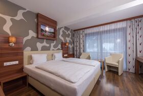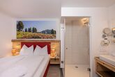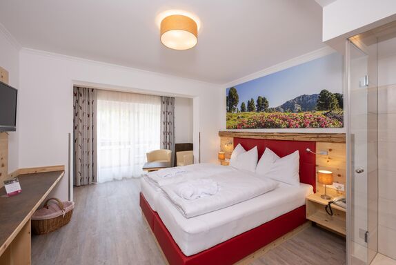 Doppelzimmer Almrausch mit Südbalkon ca. 22 m² (für 1 bis 2 Personen, Südbalkon, Gemütlicher Schlafraum, Kabel-TV, Safe Badezimmer mit Dusche und WC, Kosmetikspiegel, Föhn, Bademantel, Wellness-Korb, GRATIS WLAN