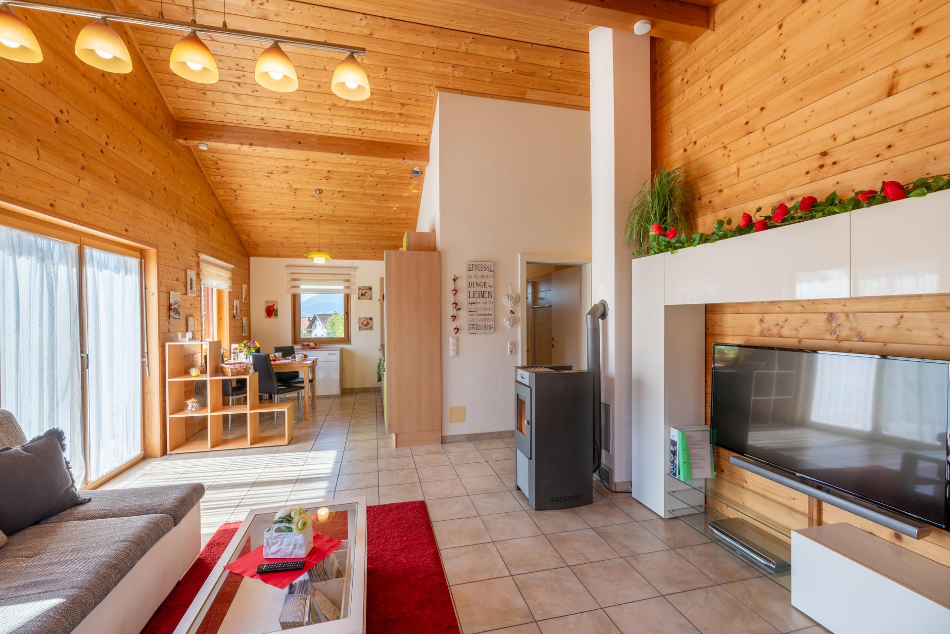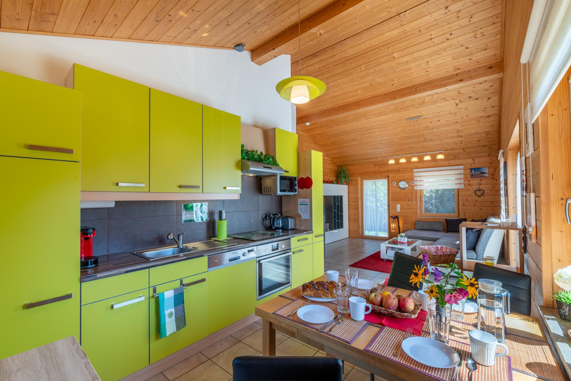 Das Ferienhaus Sonnenwiese ist komplett ausgestattet und besticht durch einen offenen Wohn - Essbereich mit moderner Küche.