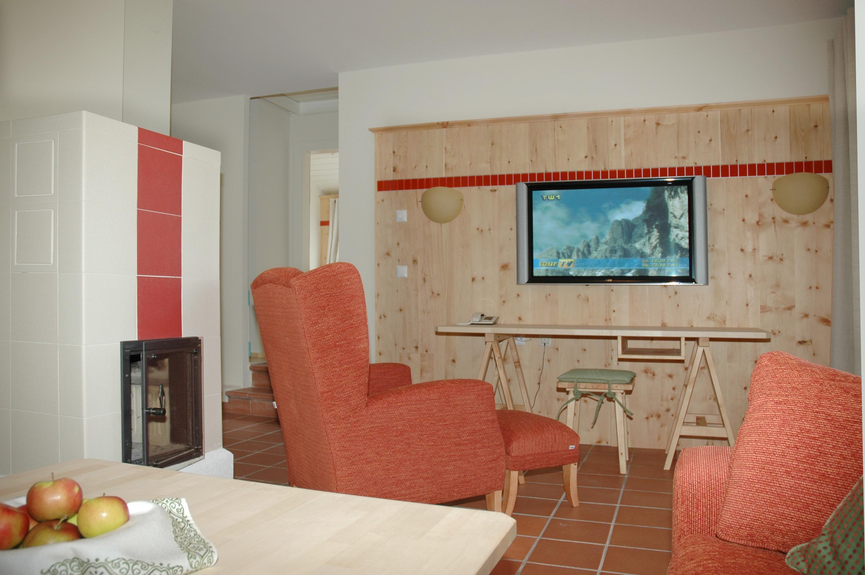 Die Romantik-Zirben-Ferienwohnung Strohsack zu 60-70 Quadratmeter besteht aus: Vorraum mit Selbstwähltelefon, Bad mit Duschecke, Waschbecken und WC (getrennt), 2 getrennten Schlafräumen (insgesamt 4 Betten; 1x Doppelbett und 1x Etagenbett), Küche,gemütlicher Eßecke im Wohnraum, SAT-TV, mit Wintergarten, Balkon oder Terrasse nach Süden.