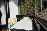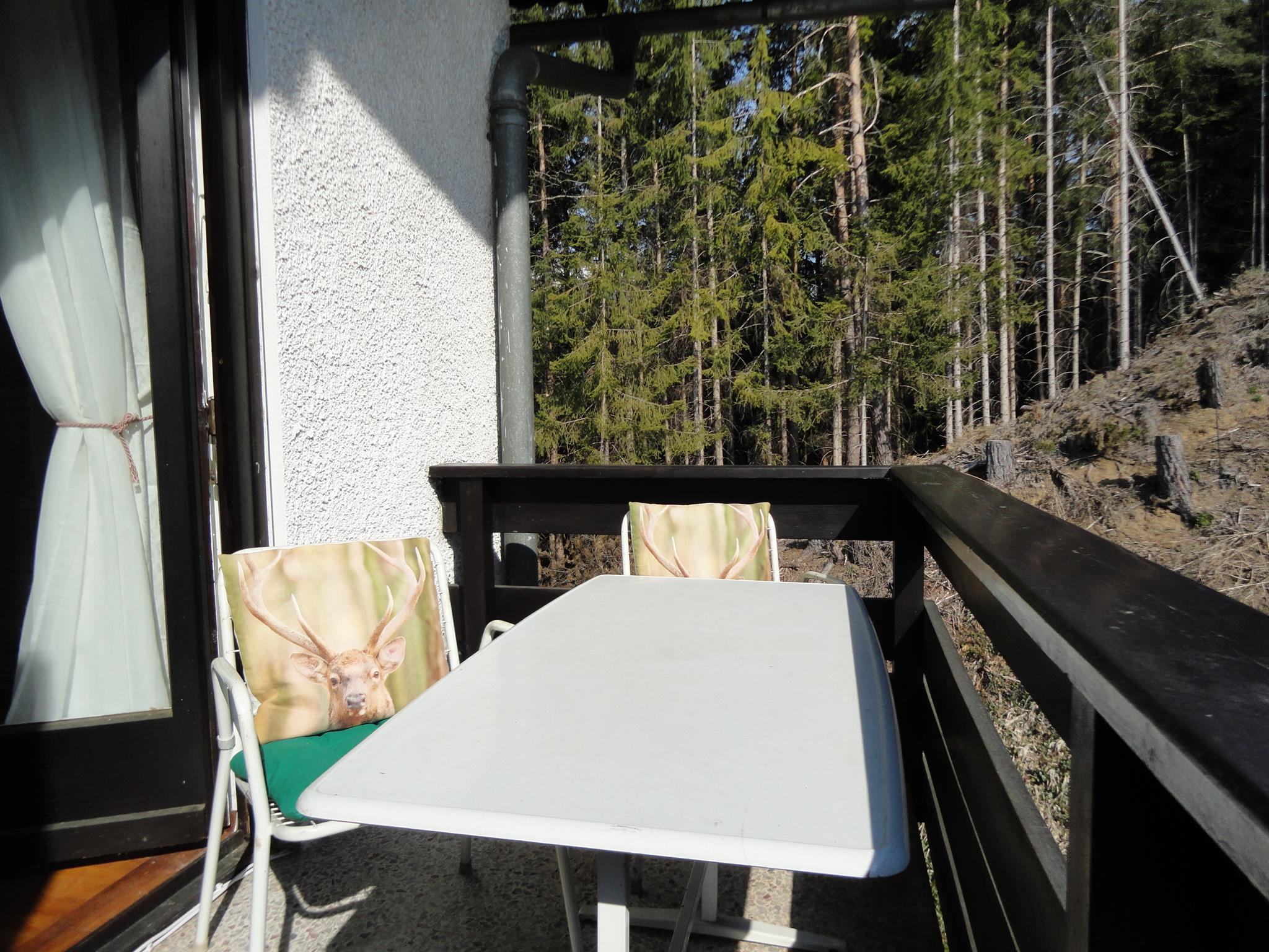 • Ausstattung:ostseitiges Wohnzimmer mit Waldblick und großem, #ostseitigem Balkon, ausziehbare Couch, max. 2 Pers., Satelliten TV, Radio; nordwestseitiges Badezimmer und Schlafzimmer mit Doppelbett und Waldblick, zentraler Vorraum; Bettwäsche, Hand- und Geschirrtücher werden vom Vermieter zur Verfügung gestellt. Küchenzeile, Geschirr vorhanden, Mikrowelle, Kaffeemaschine, Wasserkocher, Stabmixer, Toaster, Kühlschrank mit Eisfach, Elektroherd, Elektro Griller, Bad mit Infrarotheizung, Fenster, Dusche, WC; Außen-Fensterläden/ -Jalousien, Waschmaschinenbenutzung, Einbauschränke, Balkon mit Tisch und Sessel, Sonnenschirm, Nichtraucher Zimmer/App./Whg, WiFi, TV (Flachbildschirm),