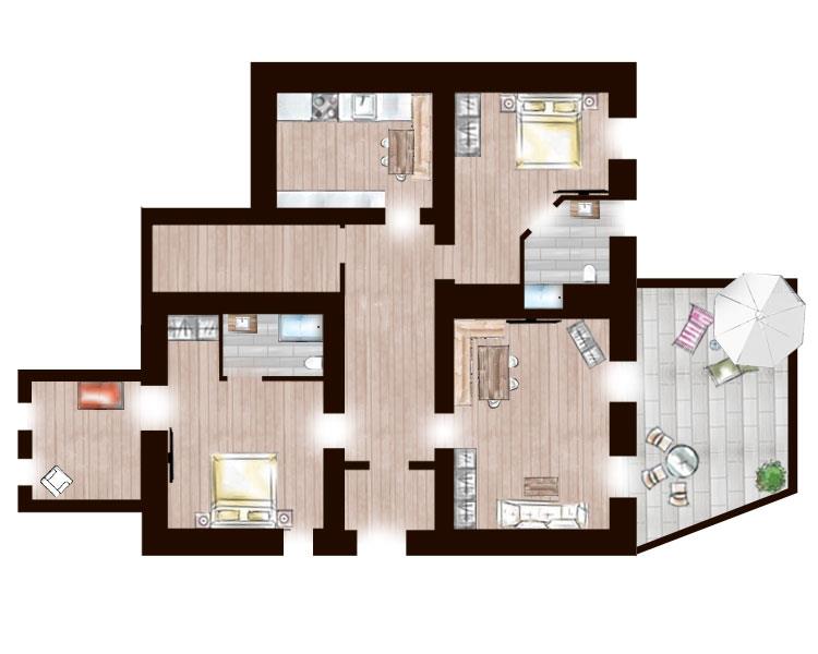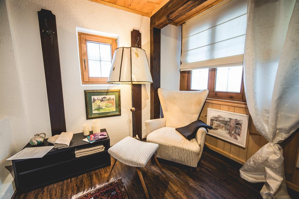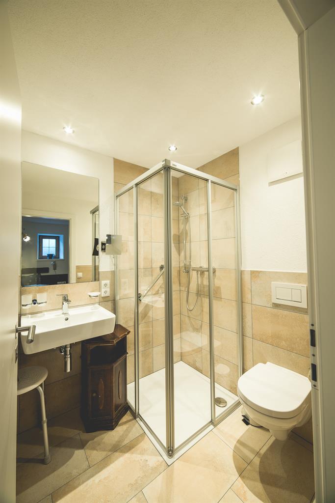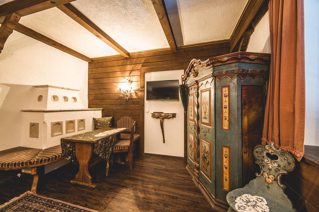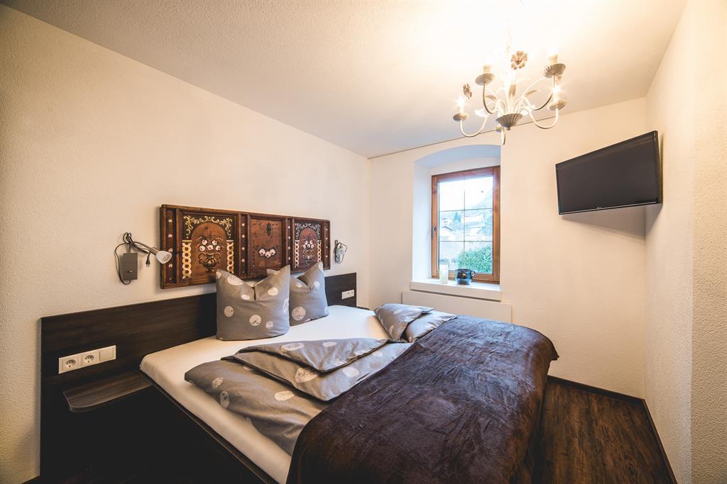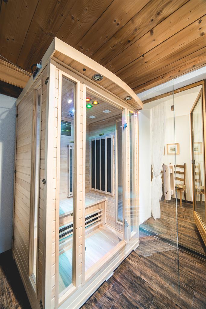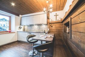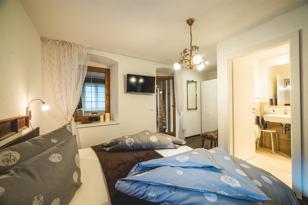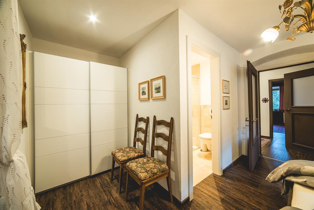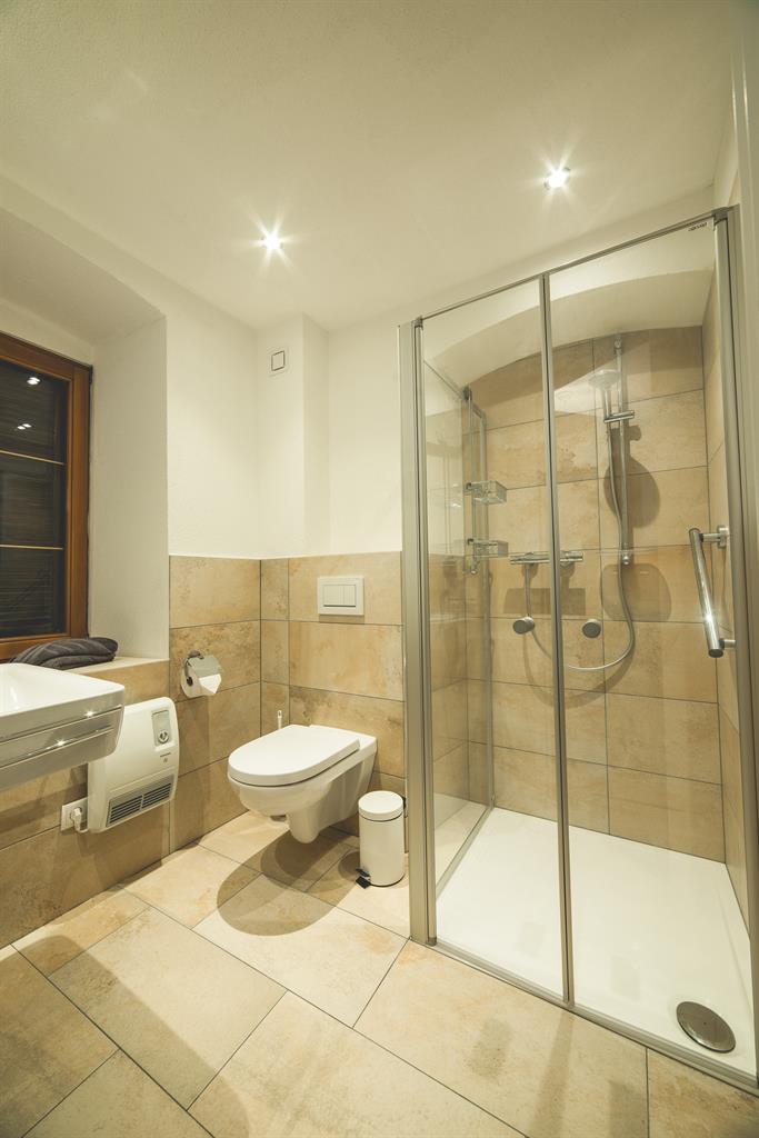 Das Appartement für 2 - 5 Personen verfügt über 2 Doppelzimmer mit jeweils DU/WC und Sat-TV, eine voll ausgestattete Küche mit Essecke, ein Wohnzimmer mit Kachelofen, und einer Schlafcouch für eine 5. Person. Es gibt einen kleinen Wellnessbereich mit einer Infrarotkabine. In der Wohnung können Sie W-LAN kostenfrei nutzen. Die Wohnung befindet sich im Erdgeschoss und ist barrierefrei (auch DU/WC).