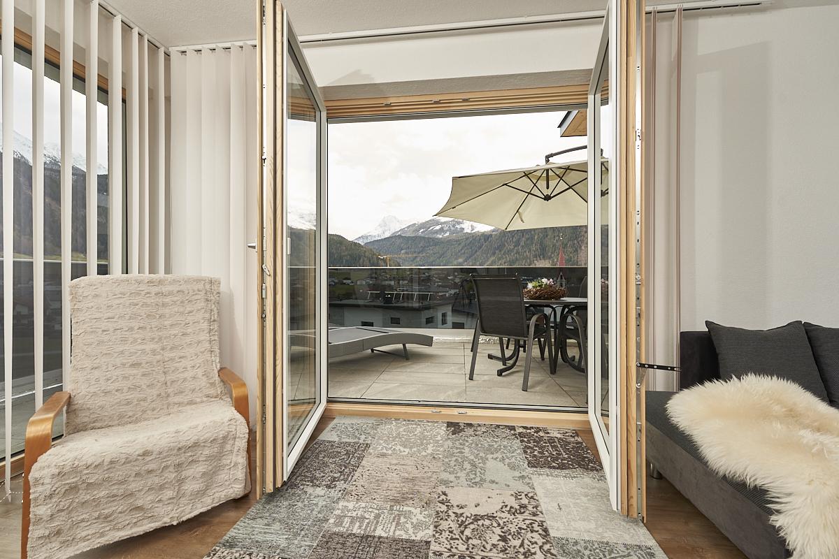 Unser Appartement (ca. 75 m²) mit eigenem Eingang verfügt über: 2 getrennte Schlafzimmer mit Doppelbetten, 1 Badezimmer mit Dusche, 1 separates WC, eine vollausgestattete Wohnküche (Geschirrspülmaschine, Kaffeemaschine, Elektroherd, Backofen, Kühlschrank, Wasserkocher uvm.) mit Esstisch für bis zu 5 Personen, Schlafsofa (Schlafmöglichkeit für die 5. Person) und Sat-TV. Genießen Sie die herrliche Ötztaler Bergluft auf der ca. 15 m² großen Panoramaterrasse.