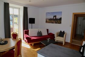 Gemütliches Appartement mit 1 Schlafzimmer, Wohnraum mit Wohn - und Essecke - alles komplett ausgestattet ( Flat-TV digital, Radio) Kochnische - 2 Cerankochfelder, Geschirrspüler, Toaster, Mikro, Kaffeemaschine etc.