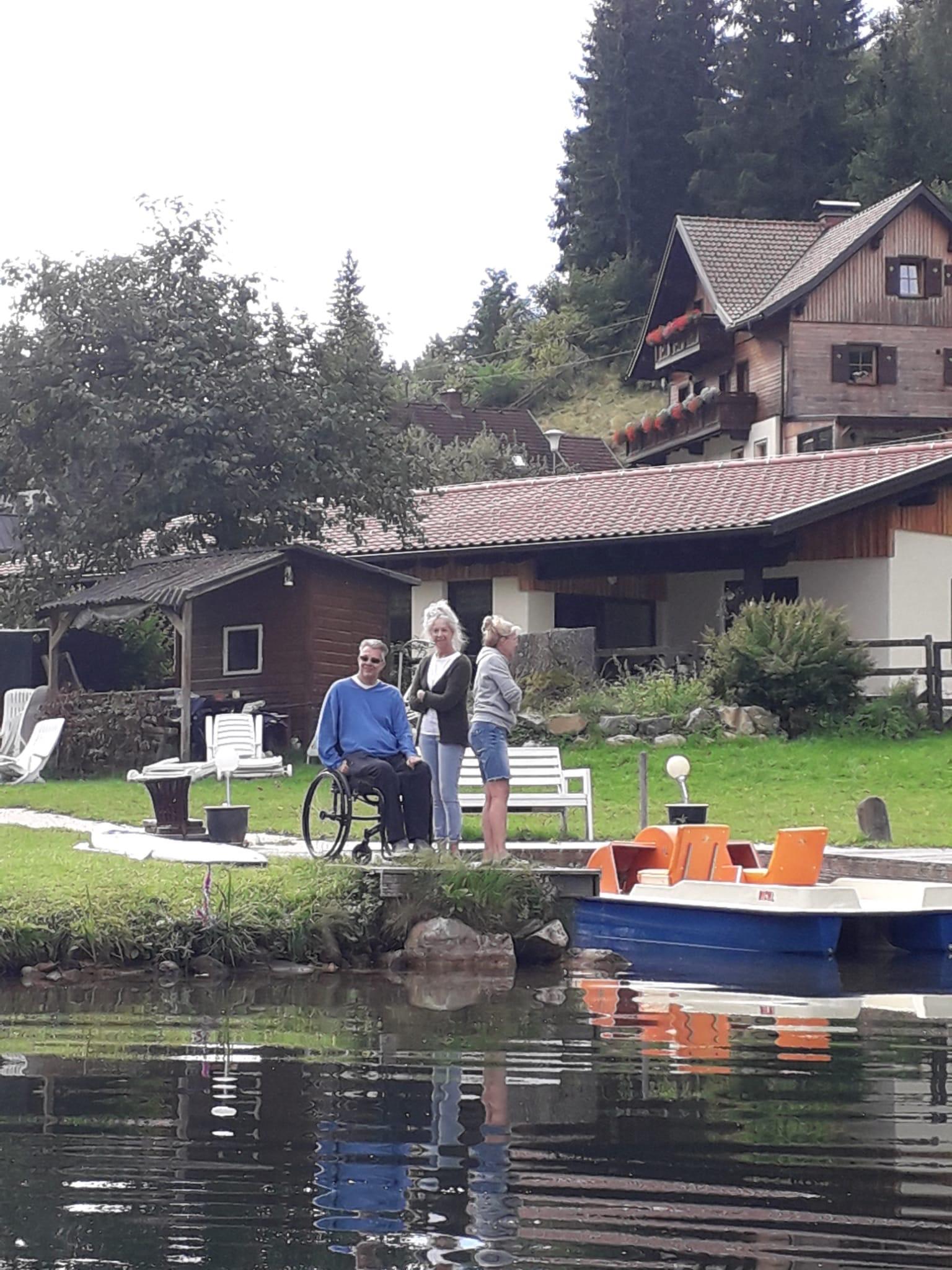 In Juni 2022 fertig gestellte behindertengerechte/barrierefreie Bungalows für Jedermann. Ob für Familien, Senioren oder Behinderte- sie sind für alle geeignet. Fischen im Rollstuhl möglich. Direkter Zugang zum Privatstrand mit Geländer, um in den See zu kommen. See ist nicht gleich tief, die ersten paar Meter sind seicht. Bungalow 1 bietet Platz für max. 8 Personen und Bungalow 2 und 3 sind beide geeignet für 6 Personen. Auch Gruppenferien sind möglich. Haus 2 und 3 können mit einander gekoppelt werden. Jeder Bungalow hat ein behindertengerechtes Badezimmer und Schlafzimmer. In Bungalow 1 gibt es noch 2 Doppelzimmer extra und in Bungalow 2 und 3 ist jeweils ein Doppelzimmer und ein kleineres Zimmer mit Stockbett vorhanden. Man kann mit Hoch-niederig Betten direkt auf die Terrasse fahren. Viel Platz zum Leben. Der Strand wird von alle Gäste benützt. Eislaufplatz vor der eigenen Haustür. Kurz gesagt - für Jedermann ist etwas dabei. Waschmachinebenützung nur auf Anfrage und gegen Gebühr möglich. In der Bungalow ist kein Waschmachine.