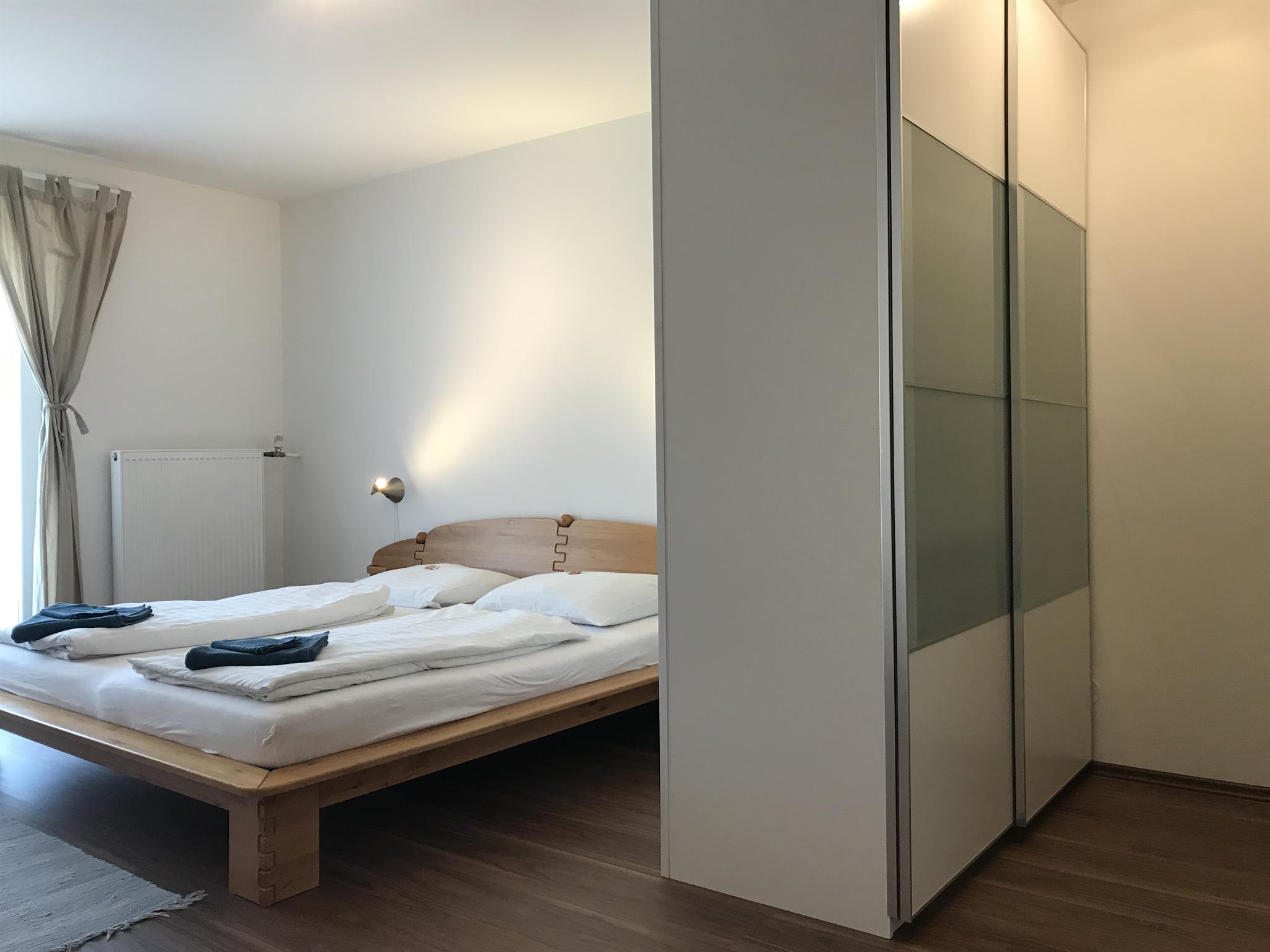 Sie verfügt über ein großes und ein kleines Schlafzimmer, eine große Wohnküche mit einer weiteren Schlafmöglichkeit für 2 Personen, einem Bad mit DU, WC getrennt.