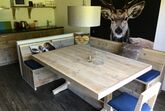 • Eine komplett eingerichtete offene Küche inklusive einer Nespresso Kaffeemaschine;