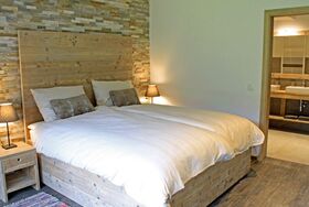 • Schlafzimmer mit Doppelbett und Swiss Sense Matratzen mit Auflage