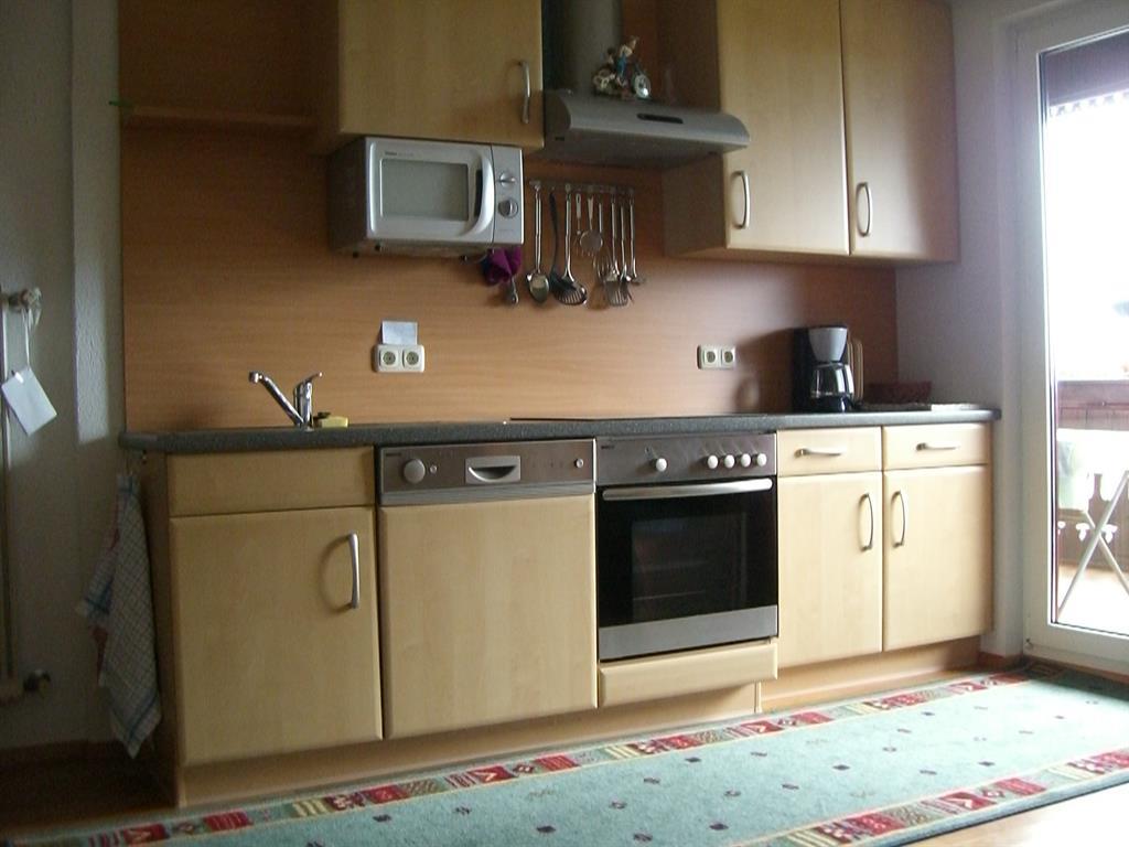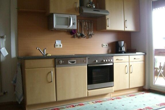 Modern eingerichtete Ferienwohnung mit einem Schlafzimmer (2-3 Personen), Bad mit Dusche und WC, großzügiger Wohnküche und großem Balkon mit schönem Ausblick. ca. 42m² Die Küche ist voll eingerichtet (Herd mit Backofen, Kühlschrank mit Gefrierfach, Geschirrspüler, Mikrowelle, Kaffeemaschine, Koch- und Speisegeschirr), Sat-TV, Radio. Bettwäsche, Hand-, Dusch- und Geschirrtücher sind vorhanden.
