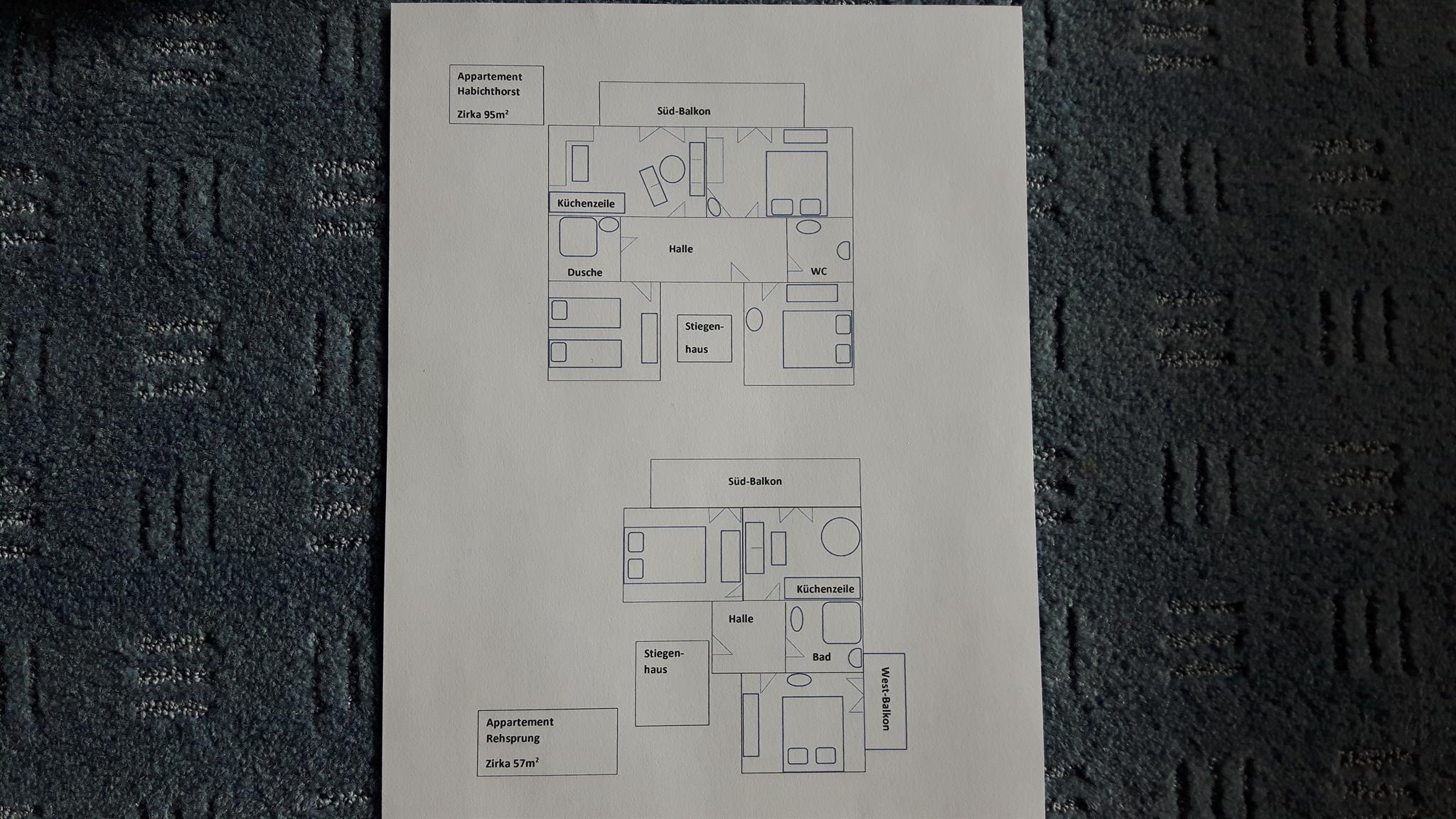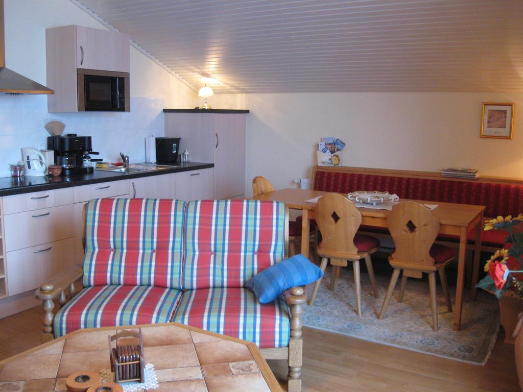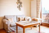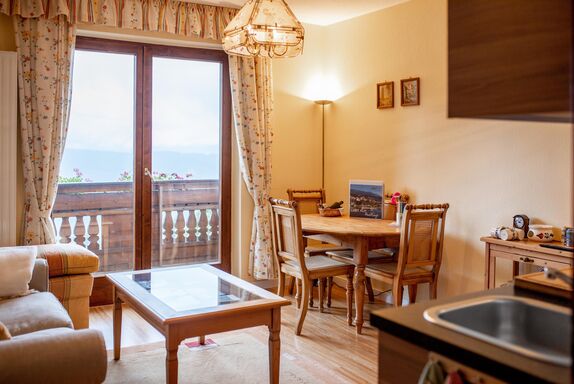 Geräumiges Appartement mit Seeblick. Wohnzimmer mit Küche und Essecke, Tür zum großen Balkon. Beide Schlafzimmer mit einem Balkon.