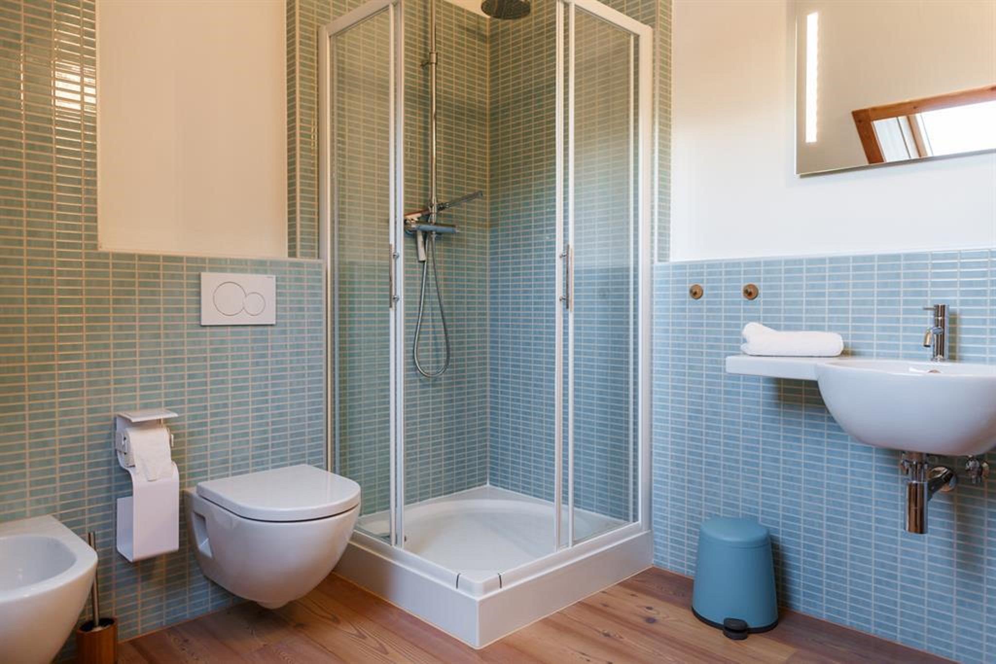 In der ersten Ebene ist auch ein Schlafzimmer mit Doppelbett (180x200) in Boxspringausführung und einem ausziehbaren Einzelbett. Ideal für Eltern mit einem Kind. Gleich neben diesem Schlafzimmer befindet sich ein freundliches Badezimmer mit Waschbecken, Dusche, Bidet und WC. In der zweiten Ebene gibt es dann noch ein Schlafzimmer. Hier steht ebenso ein Doppelbett (180x200) in Boxspringausführung und ein ausziehbares Einzelbett bzw. Doppelbett. Gegenüber hat man ein eigenes Badezimmer mit Dusche, Waschbecken, Bidet und WC.