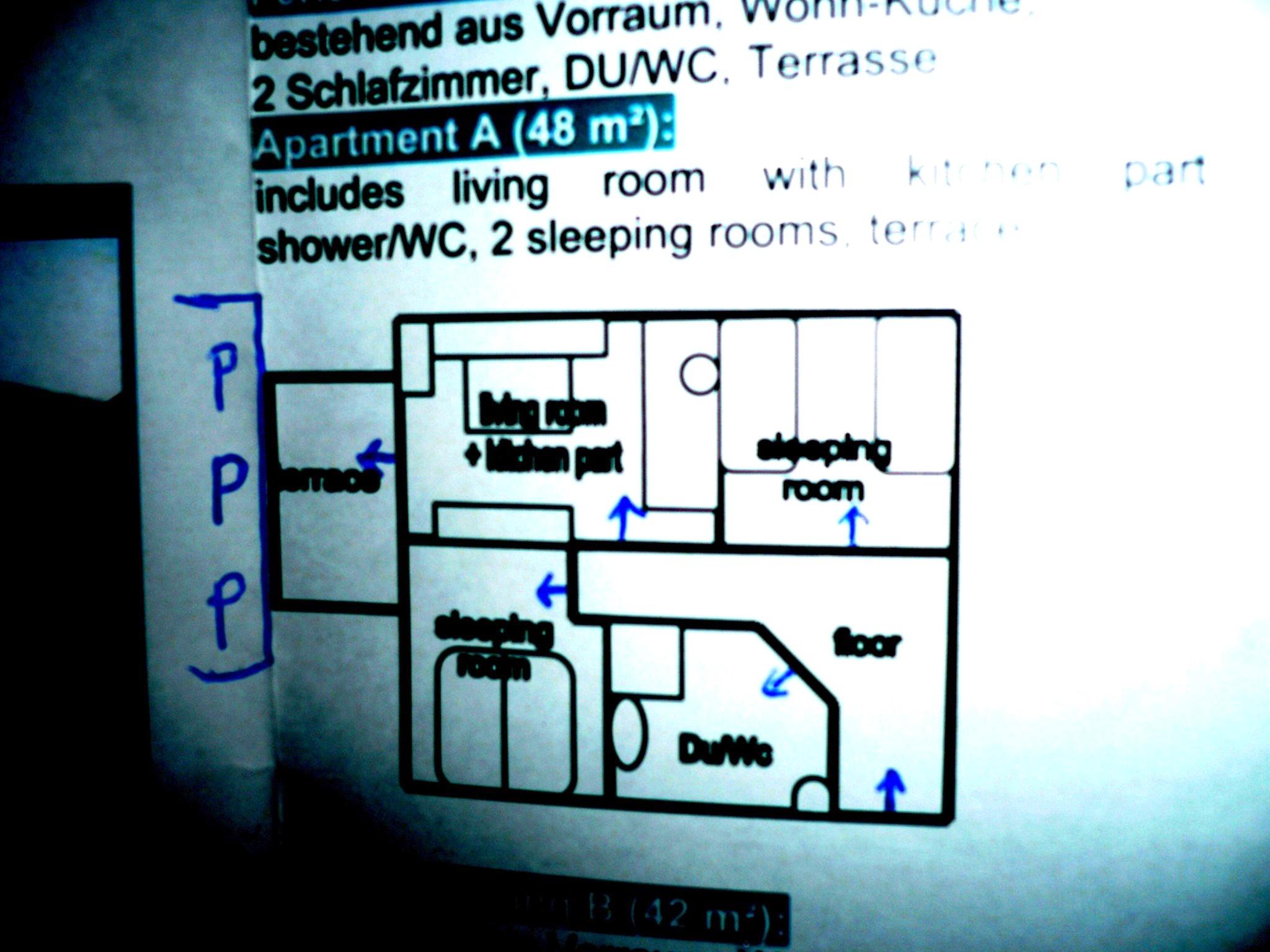 Die Ferienwohnung A hat 48 m² und kann von maximal 4 Personen gebucht werden. Die Ferienwohnung liegt im Erdgeschoß und hat 1 Windfang mit Abstellmöglichkeit (z.B. Ski, Wanderstöcke, etc.), 1 Vorraum, Bad (WC/DU), 1 Schlafzimmer mit Doppelbett, 1 Schlafzimmer mit 2 Einzelbetten, 1 Wohnraum mit Küchenzeile, Essecke, Flat-TV, Terrasse und Parkplatz.