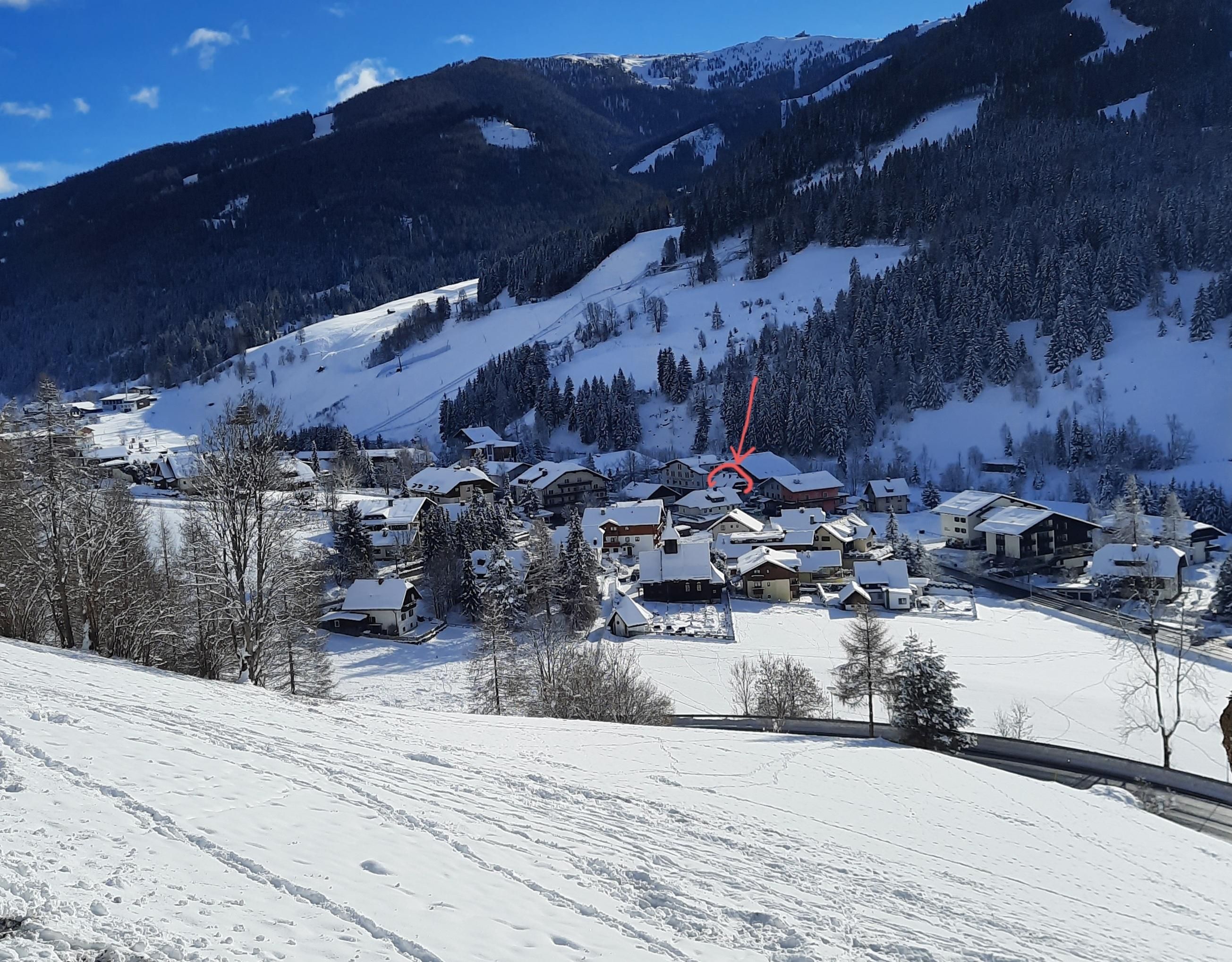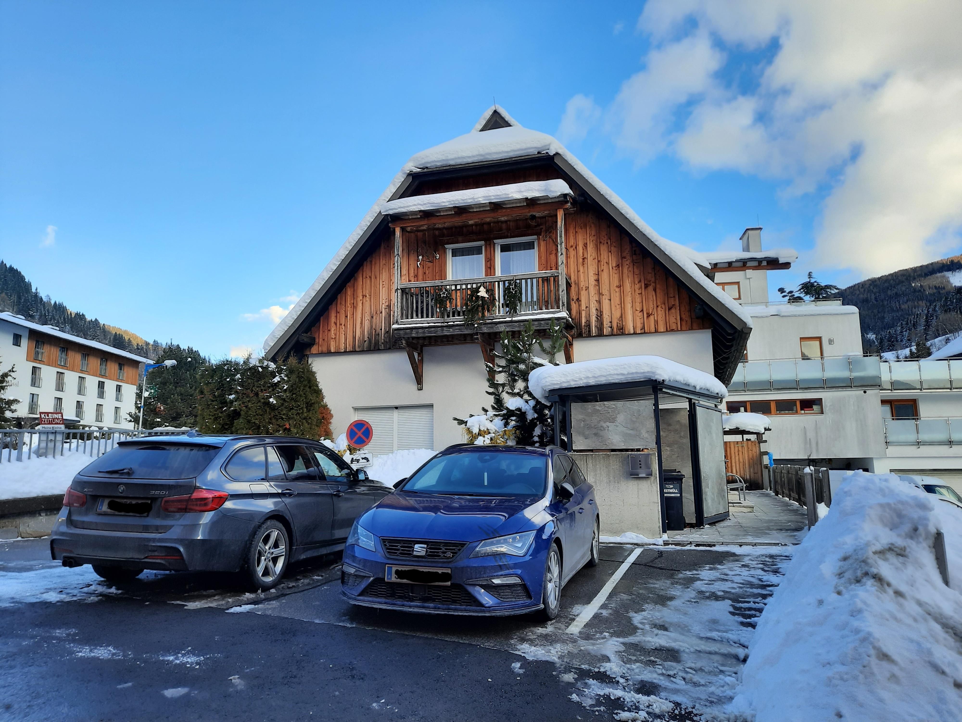 Unser Haus mit 2 Ferienwohnungen befindet sich im Zentrum, direkt an der Dorfstrasse von Bad Kleinkirchheim. Die Lage unseres Hauses bietet Ihnen einen guten Ausgangspunkt für viele Freizeitaktivitäten. Wir bieten Ihnen Parkplatzmöglichkeit direkt vorm Haus. Ebenso befindet sich die Bushaltestelle für den Skibus im Winter direkt beim Haus. Die Therme Römerbad bzw. die Liftanlage Kaiserburgbahn (6er Gondel) befinden sich in 350 m Entfernung. Auch die Supermärkte sind nur 200 m entfernt. Ausserdem können Sie direkt nebenan die Bäckerei Weissensteiner (ganzjährig täglich geöffnet) nutzen. In unmittelbarer Nähe befinden sich im Sommer Tennisplätze. Die nächsten Nachbarn sind 2 Restaurants und eine Bank. Gerne steht Ihnen GRATIS WLAN zur Verfügung.