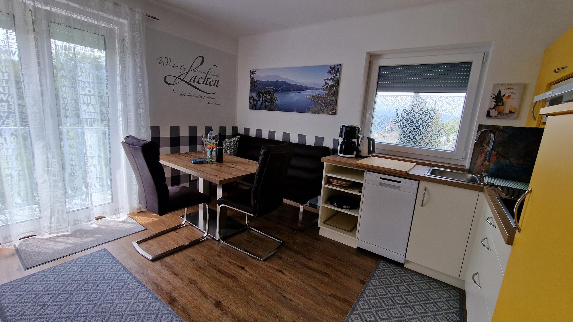 Gemütlich und neu eingerichtete 52 m² Ferienwohung für 2 bis 4 Personen mit WLAN, SAT-TV und komplett ausgestatteter Küche. Geschirrspühler, Kaffeemaschine, Wasserkocher, Mikrowelle, sowie Waschmaschine, Bettwäsche und Handtücher werden bereitgestellt.
