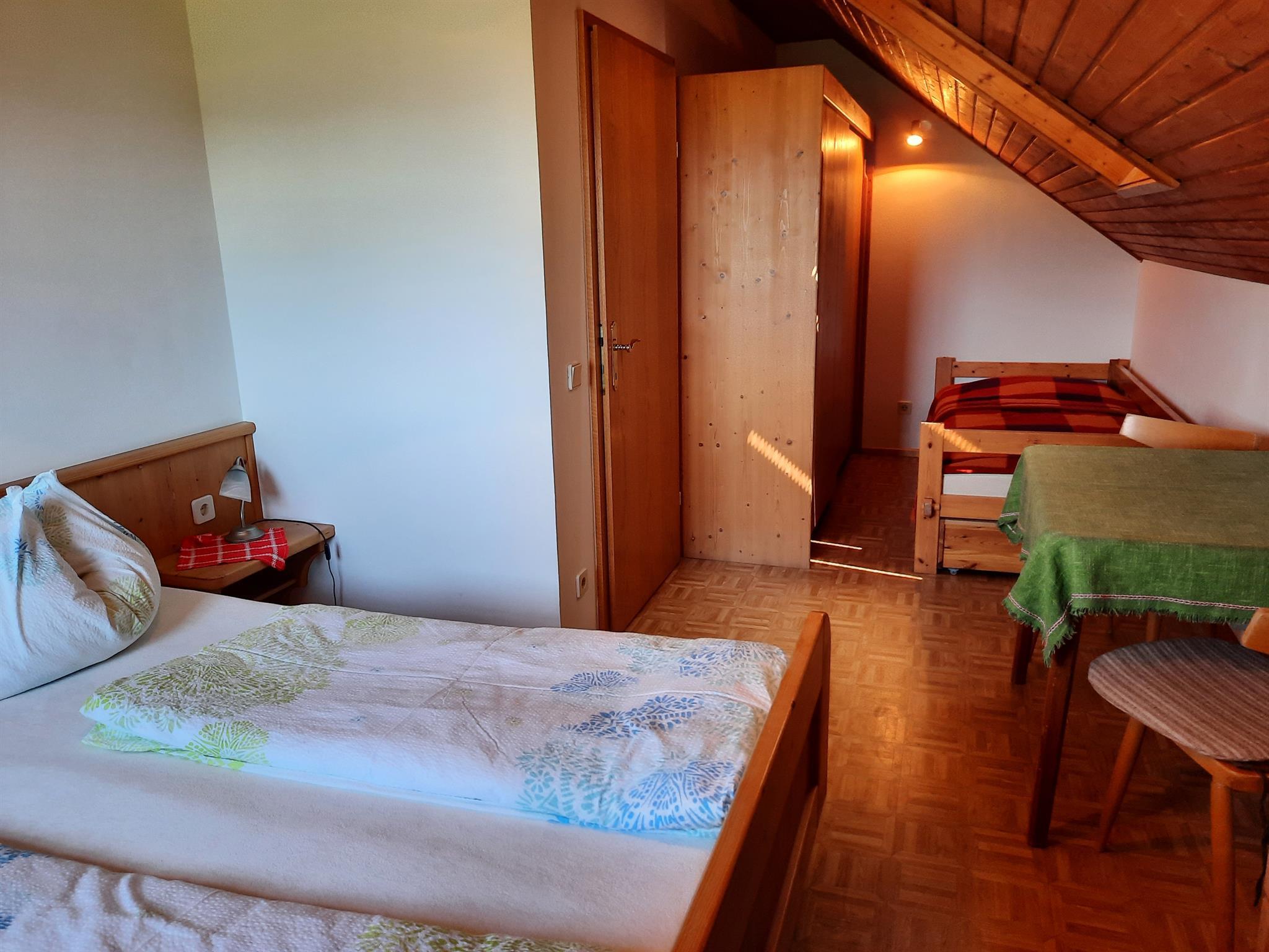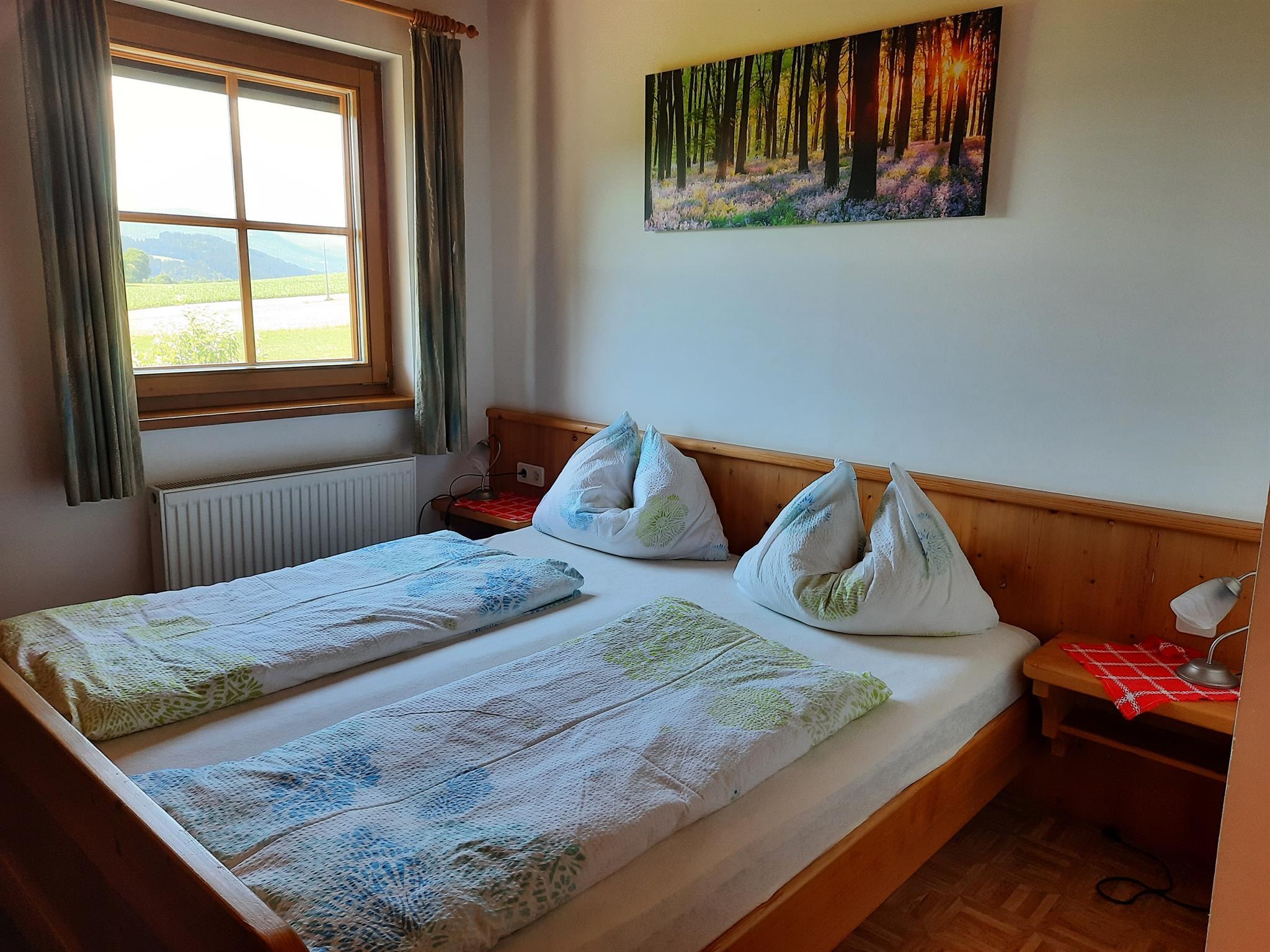 Unsere Ferienwohnung Bergsicht gibt einen wunderbaren Blick Richtung Westen auf die Gerlitze, den Ossiacher Hausberg, frei. Genießen Sie diese Aussicht bereits nach dem Aufwachen von Ihrem Schlafzimmer aus! Neben dem Badezimmer mit Dusche und WC bieten die beiden Schlafzimmer im Obergeschoss Platz für bis zu fünf Personen. Im Untergeschoss finden Sie ausreichend Platz während Ihres Urlaubs im geräumigen Wohnzimmer mit angeschlossener Küche und kleinem Balkon. Im Eingangsbereich befindet sich eine Garderobe und ein separates WC. Die Kinder werden den Spielplatz im Garten und die Tiere am Hof lieben. Gerne können Sie für Ihren Urlaub in der Ferienwohnung auch Frühstück und/oder Abendessen in unserer Pension im Nebengebäude dazubuchen. Gratis WLAN.