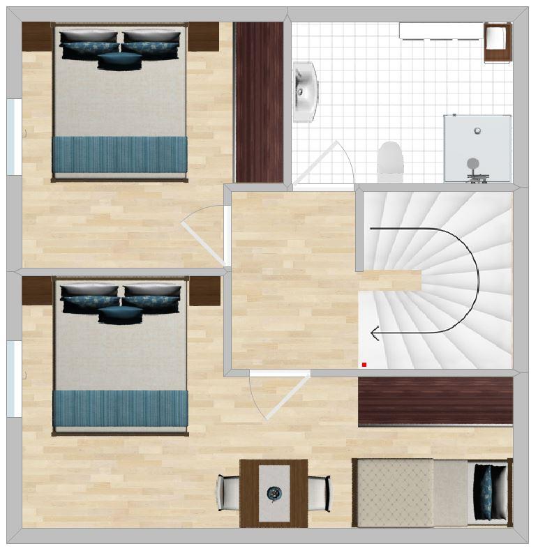 Unsere Ferienwohnungen mit je ca. 70 m² sind zweigeschoßig ausgeführt. Im Erdgeschoß befindet sich neben dem Vorraum eine komplett eingerichtete Küche, Wohnraum mit SAT-TV, WC einer überdachten Loggia. Im Obergeschoß sind 2 Schlafzimmer sowie Dusche mit WC.