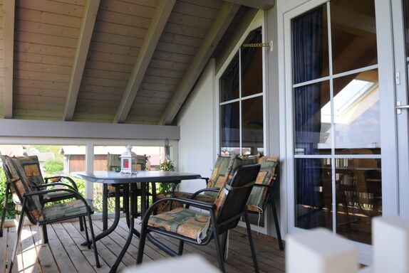 - möblierte, windgeschützte und überdachte Südveranda (bei Föhn mit Alpenblick), hier ist Rauchen gestattet