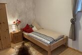Einem großen Doppel Schlafzimmer mit Zustell Bett und einem Schlafzimmer mit Französischem Bett (140 cm breit) für zwei Personen.