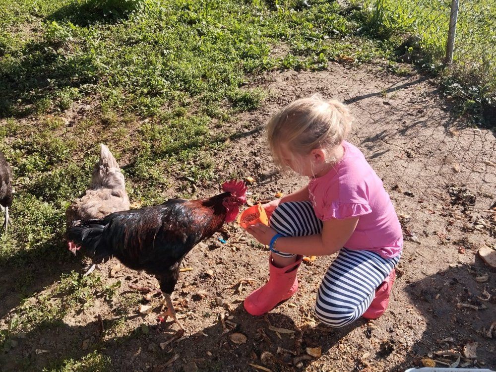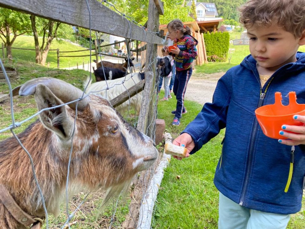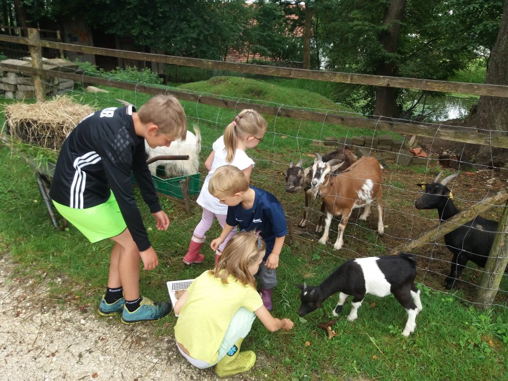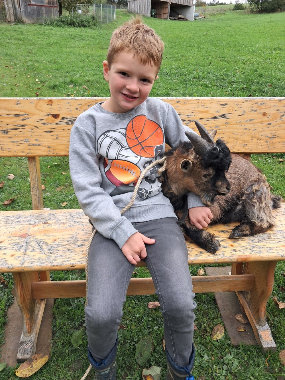 Für Kinder ein Paradies. Denn sie können den ganzen Tag im Kleintierstall oder Freigehege mit unseren Hasen kuscheln und schmusen. Die Ziegen Hansi, Lotte und Bubi, viele Hühner, Gänse und Enten freuen sich besonders, wenn sie gefüttert und gestreichelt werden.