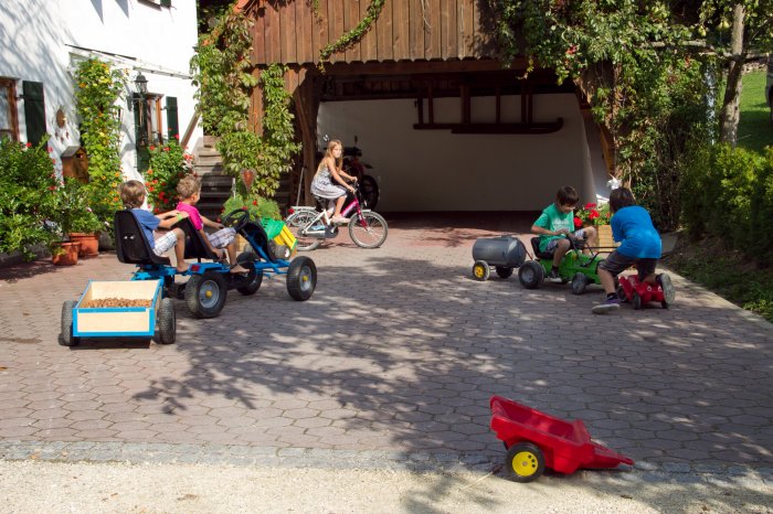 Ein Abendteuer ist die Traktorfahrt mit unserem Kramerle über satt grüne Wiesen zur Antonius Kapelle oder zum Gipfelkreuz, eine Klettertour auf die sagenumwobene Moosburg sowie eine Nachtwanderung mit Sagen Erzählung.