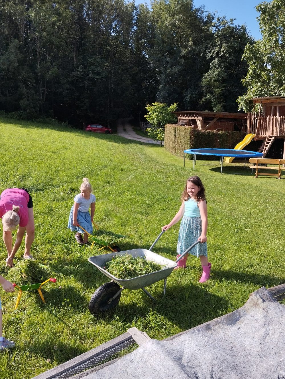 Für Kinder ein Paradies. Denn sie können den ganzen Tag im Kleintierstall oder Freigehege mit unseren Hasen kuscheln und schmusen. Die Ziegen Hansi, Lotte und Bubi, viele Hühner, Gänse und Enten freuen sich besonders, wenn sie gefüttert und gestreichelt werden.