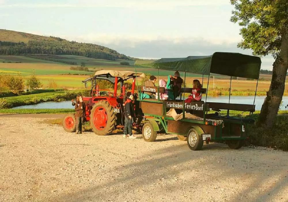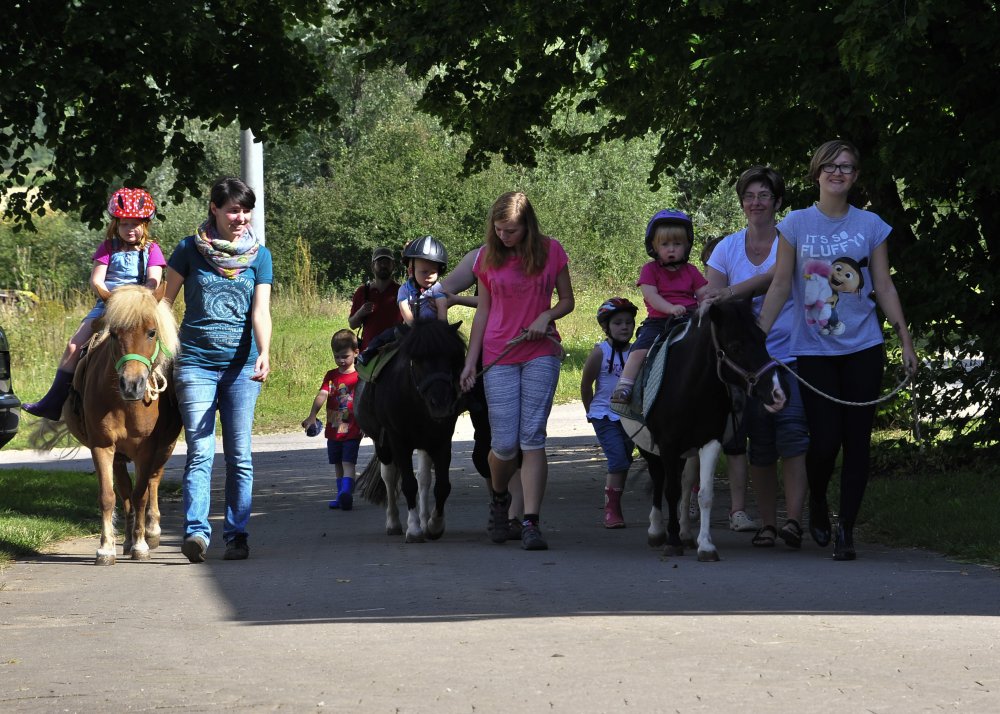 Dazu gehören Ponyführen, Planwagenfahrt, Traktorfahren,Geführtes Reiten, Stockbrot backen. Mit einem großem Fuhrpark für groß und klein und großem Spielplatz ist für alle größen etwas geboten.
