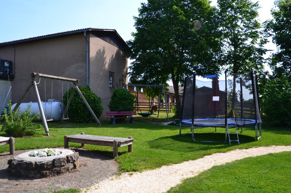 - Tretfahrzeuge für Klein und Groß, Trampolin, Schaukel, Beobachtungsturm für Kinder.