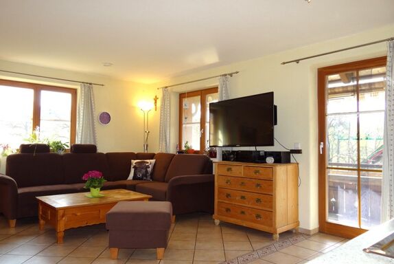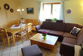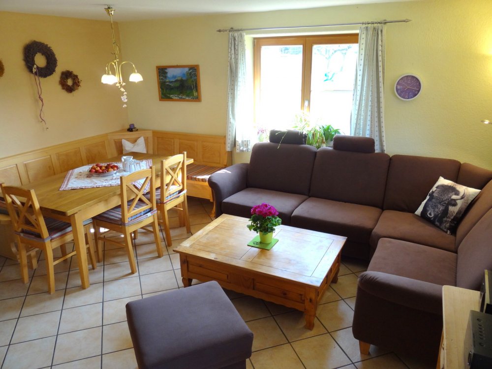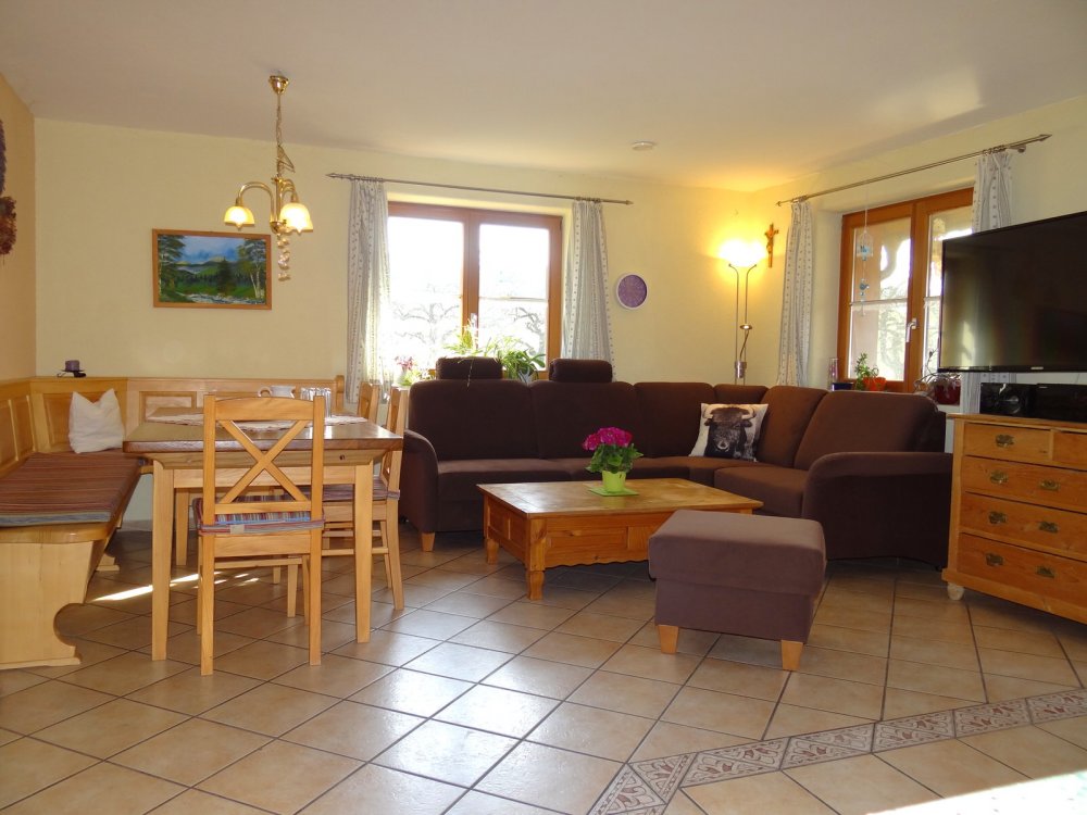 Unsere Ferienwohnung Sonnenhaus ist nach den Richtlinien des Deutschen Tourismusverband mit 3 Sternen klassifiziert worden. Sie befindet sich im neu, nach ökologischen Gesichtspunkten, errichteten Austragshaus direkt neben dem Hof. Hier vereinen sich, innen wie außen, niedriger Energieverbrauch mit hohem Wohnkomfort. Die Wohnung mit großen Balkon und Blick über die Schweizer Berg ist gemütlich und komfortabel ausgestattet.