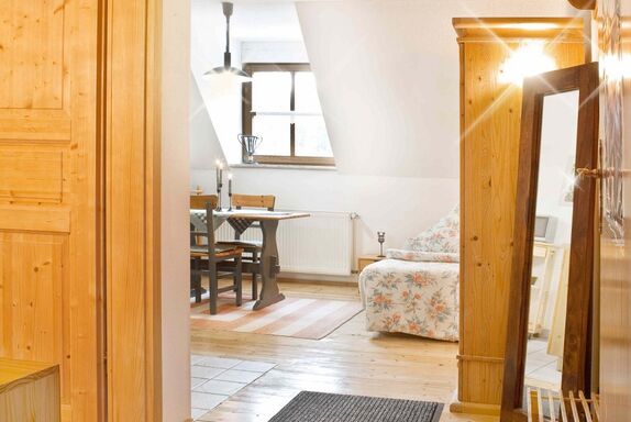 Beim Taubenschlag handelt es sich um unsere kleinste Fewo. Sie kann auch zusammen mit dem Adlerhorst bebucht werden, und diesen um einen Schlafraum ergänzen.
