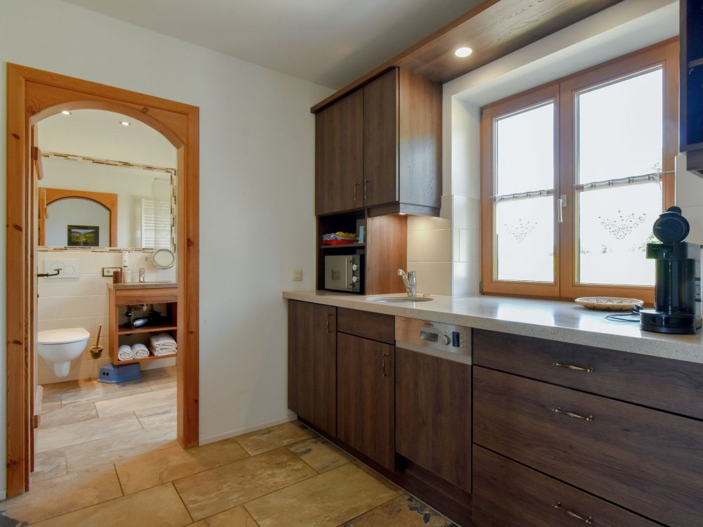 Schöne Ferienwohnung mit Wellnessbad, Wohnzimmer, Schlafzimmer, Küche mit Spülmaschine und Mikrowelle, Flat-Sat-TV, WLAN auf dem Hof verfügbar, möblierter Balkon (Südseite).