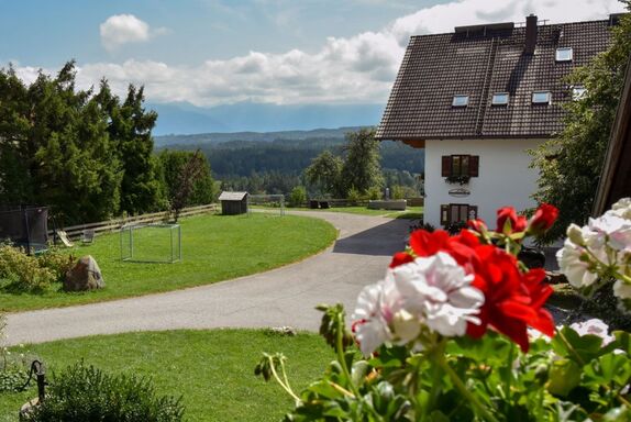 Unser Bio-Hof liegt absolut ruhig auf einer Anhöhe mit grandiosem Panoramablick auf die Berge und den Staffelsee. Kühe, Kälber, Schafe, Pony, Hühner, Katzen und Hasen sorgen für echtes Landleben.