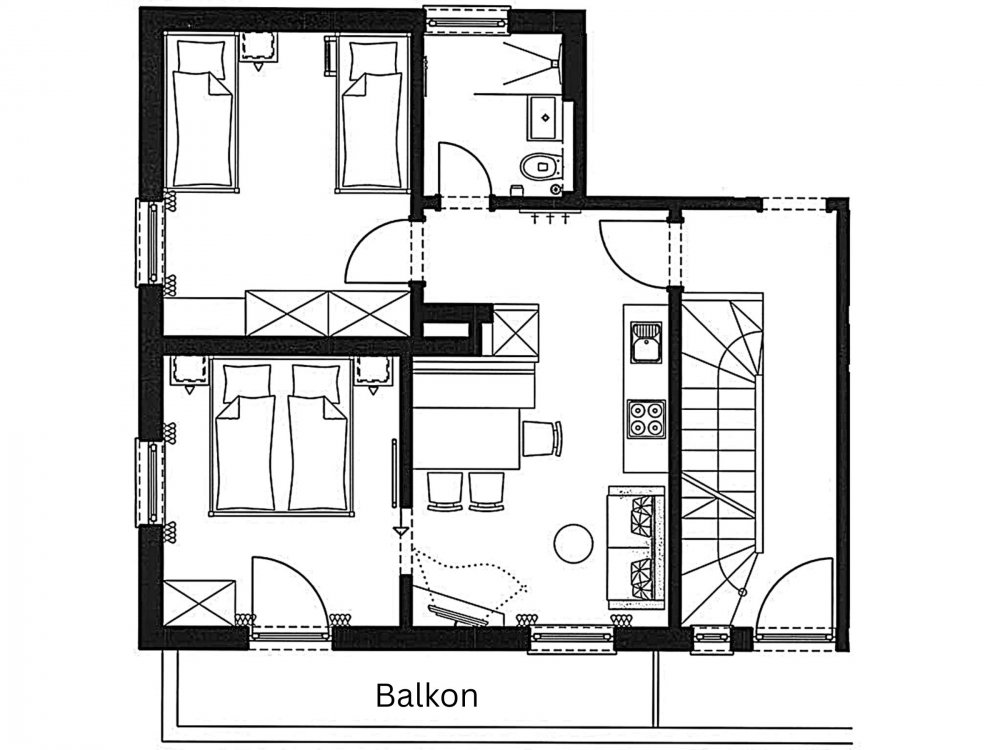 Ferienwohnung 2 (Ringelblume, 1. Stock, 55 qm).