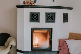 Feine Ferienwohnung der Extraklasse mit 2 Schlafzimmern, edlem Badezimmer und großzügigem Wohnraum mit Kachelofen und schönem Sonnenbalkon, komplette Küchenzeile, ein weiteres Schlafzimmer mit Dusche/WC ist zubuchbar
