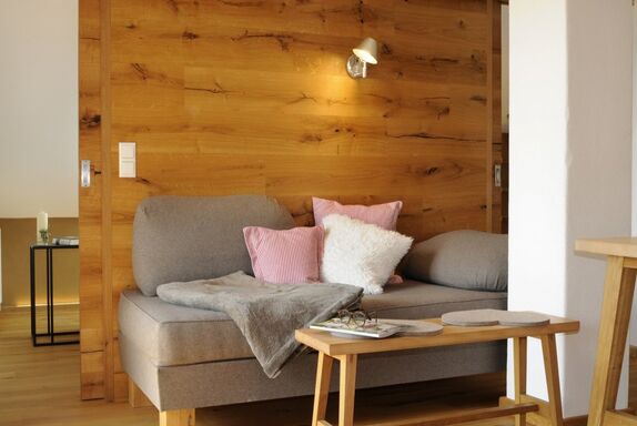 Liebhaber wohliger Dachschrägen können Sie ins exklusive Wohlfühlbett kuscheln, durch das Panoramafenster den Weitblick auf die Alpenkette bewundern und Sterne beobachten, auf dem geschützten Ostbalkon sitzen, den Blick zum Kloster Benediktbeuern und den Sonnenaufgang zwischen den Berggipfeln genießen.