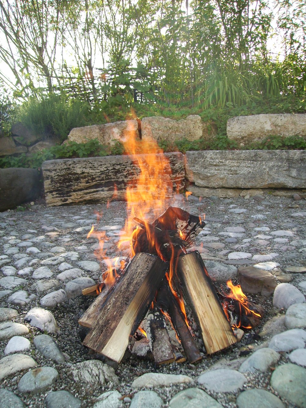 ... ein knisterndes Lagerfeuer im Steinkreis des Kräutergartens