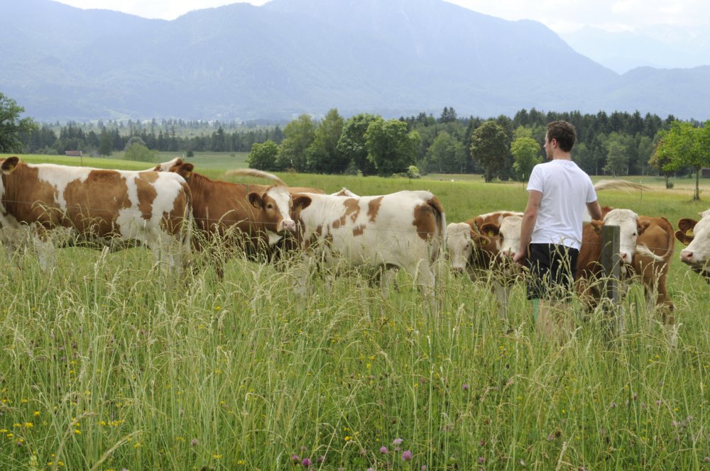 ... zufriedene Rinder die vor dem Haus grasen oder im Stall genüsslich wiederkäuen
