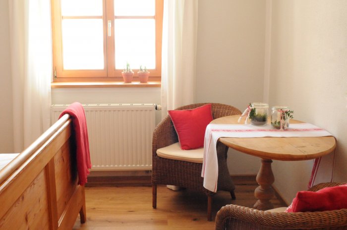 Romantisches Wohnen mit großem KuschelG´flack aus feinstem Loden, gemauertem Kaminofen und urigen Eichendielen.