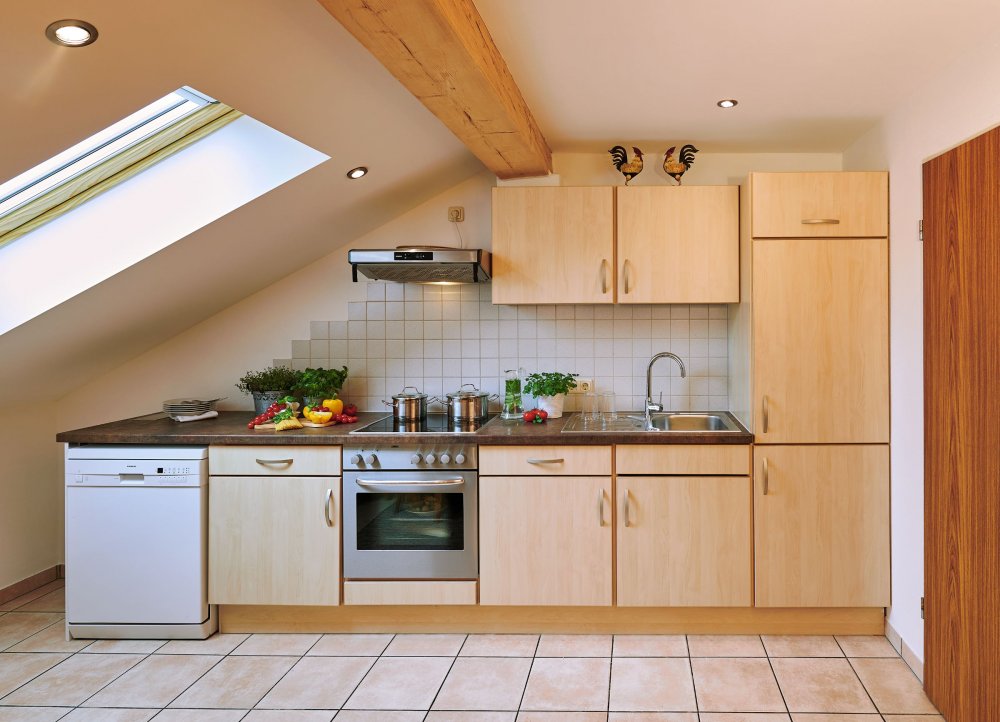 Komplett ausgestattete Küche mit E-Herd, Backofen, Geschirrspüler