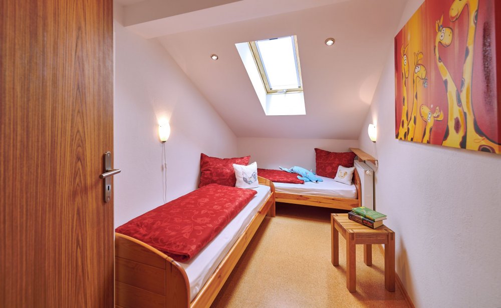 1 Kinderzimmer mit zwei Einzelbetten mit einer Kuschelecke