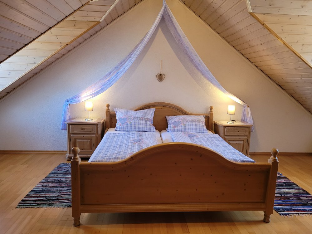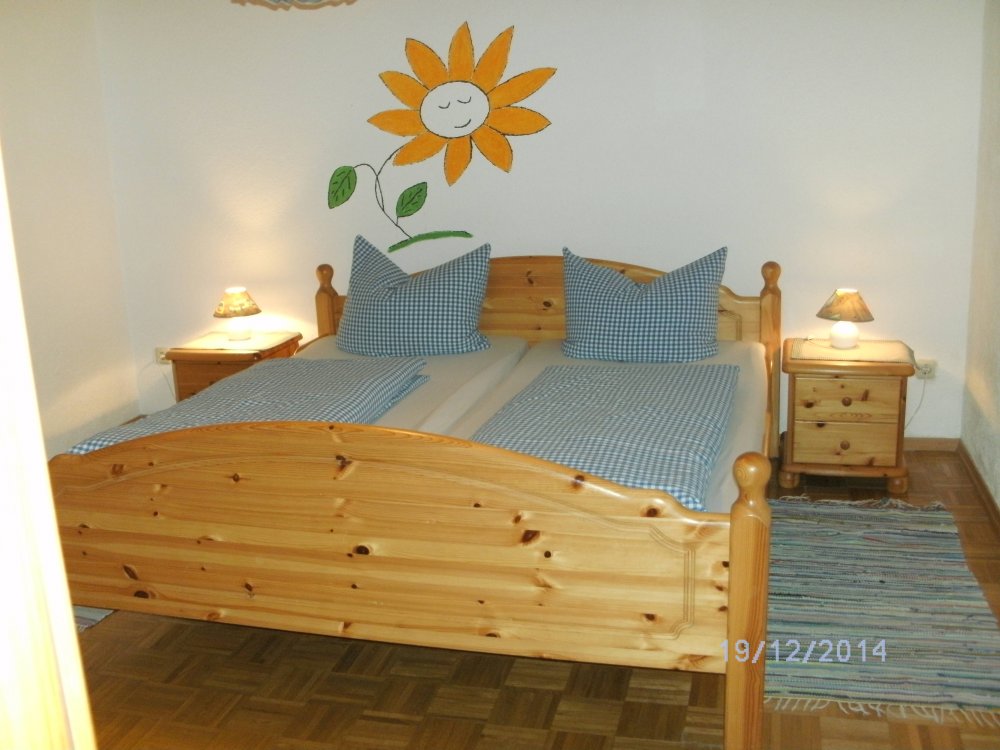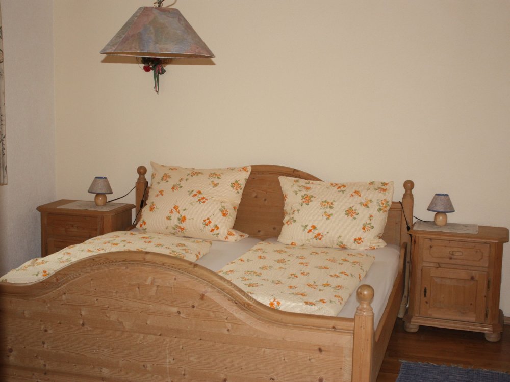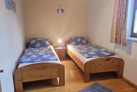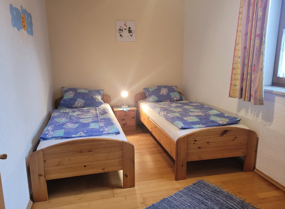 Im Elternschlafzimmer ein Doppelbett, im Kinderzimmer 2 Einzelbetten.