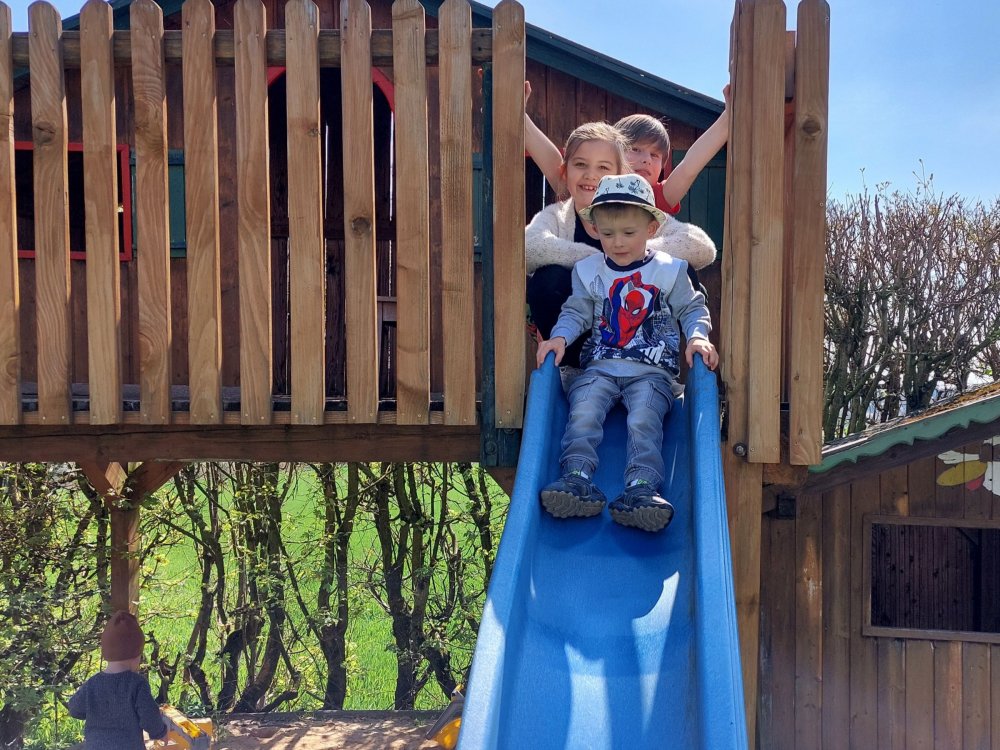 begeistert sein - mit Kettcar, Trettraktor oder Fahrrad ist man superflott auf dem Hof unterwegs. Und unsere