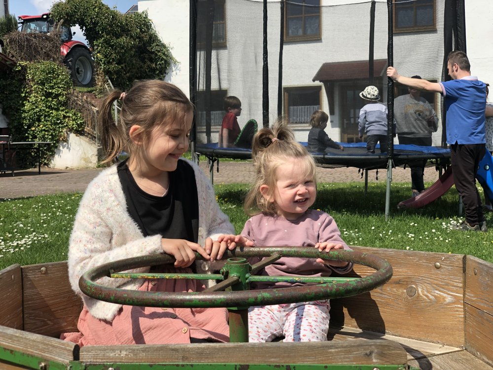 begeistert sein - mit Kettcar, Trettraktor oder Fahrrad ist man superflott auf dem Hof unterwegs. Und unsere