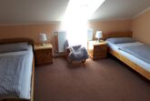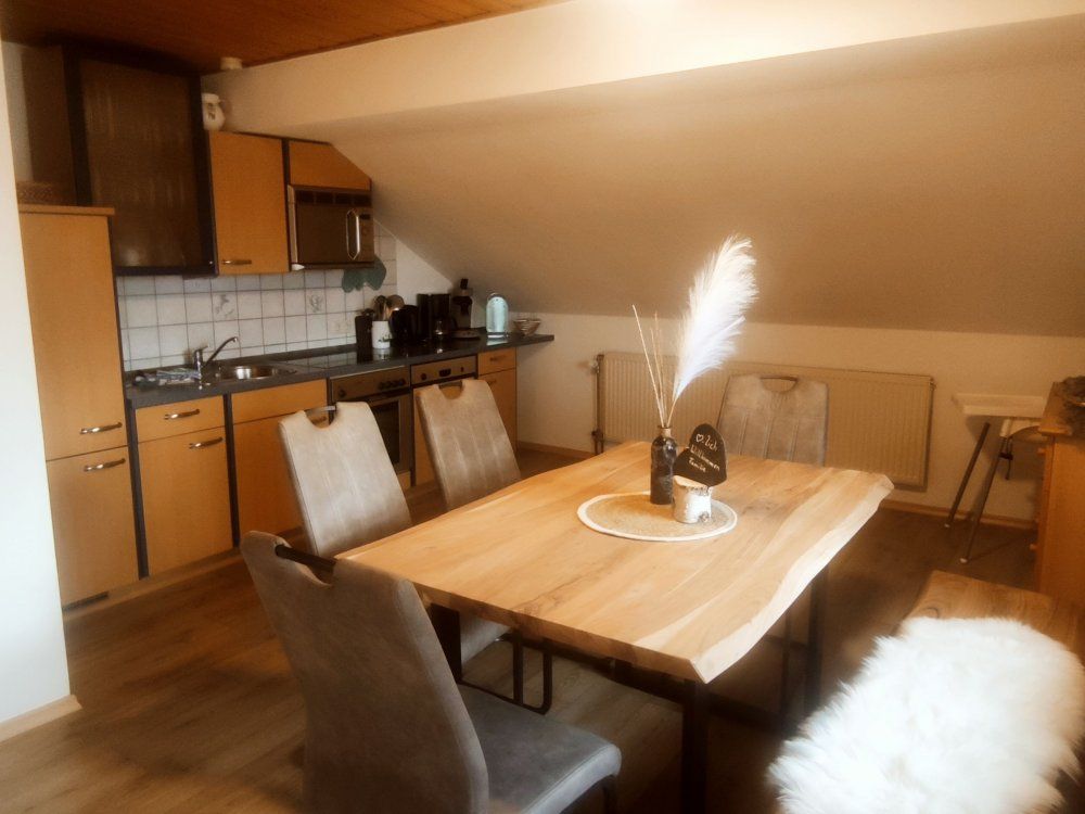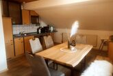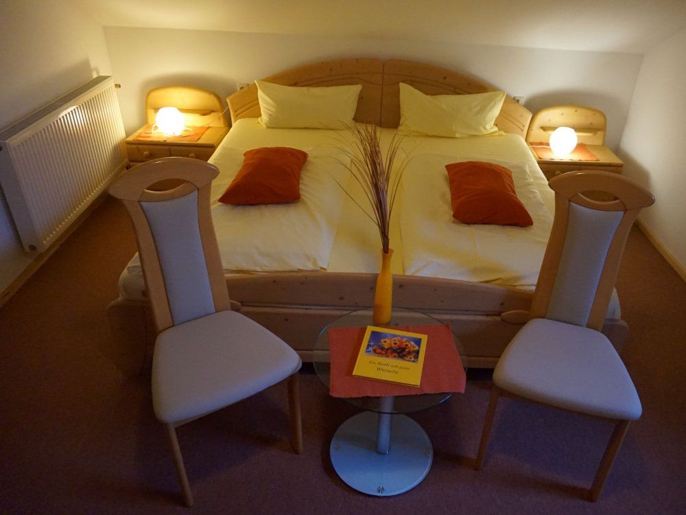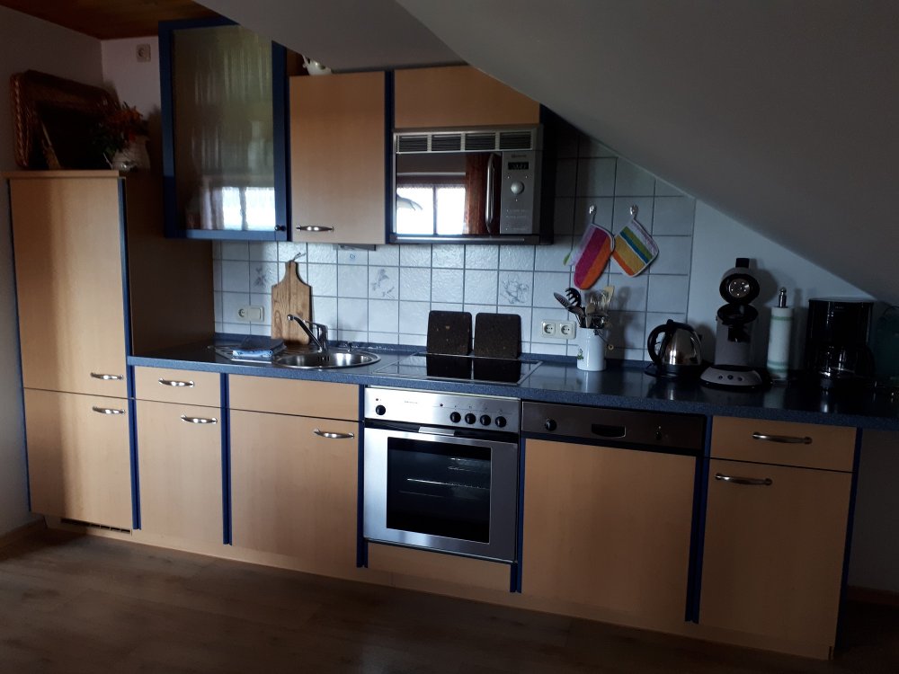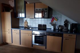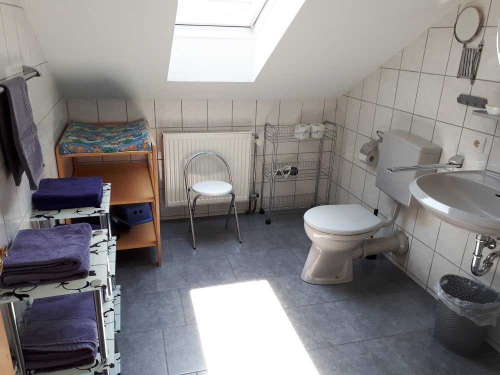 Unsere komfortable Ferienwohnung mit Balkon verfügt über ein Elternschlafzimmer mit Doppelbett, ein Kinderzimmer mit zwei Einzelbetten. Eine gut ausgestattete Wohnküche mit Mikrowelle und Geschirrspüler. Der Wohnraum verfügt über SAT-TV, DVD-Player und Stereoanlage.Die Kinderausstattung umfasst unter anderem einen Hochstuhl, Wickelkommode, Toilettenaufsatz, Babyphon und Nachtlicht. Das Badezimmer hat ein Dachfenster, und Dusche und WC.