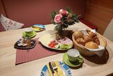 Wir bieten Ihnen morgens ein reichhaltiges Frühstück oder täglich frischen Brötchenservice.