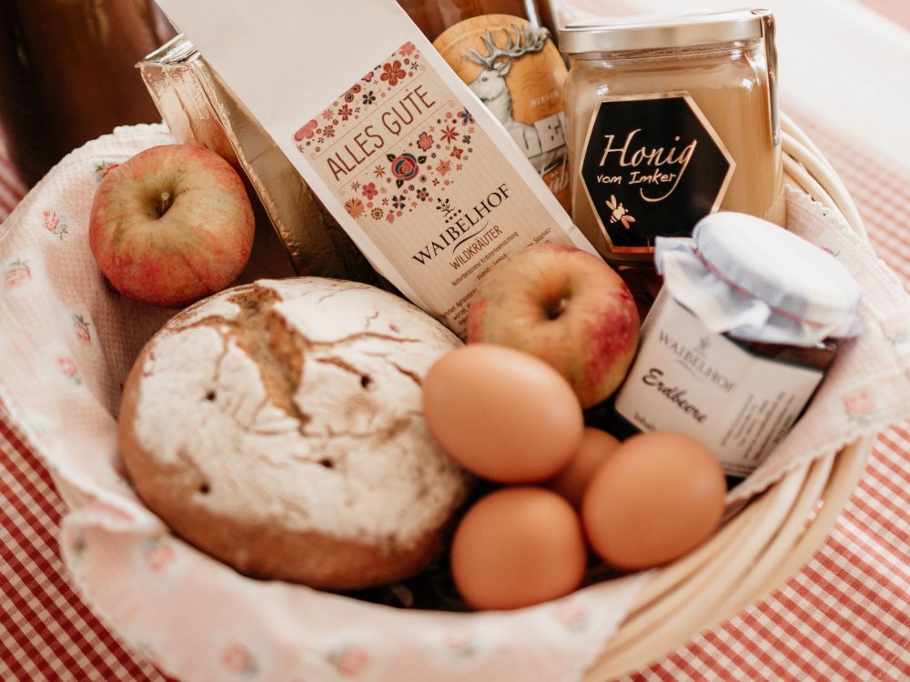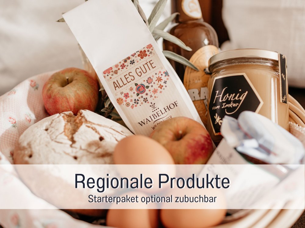 Korb mit regionalen Produkten kann einmalig zur Anreise hinzugebucht werden.